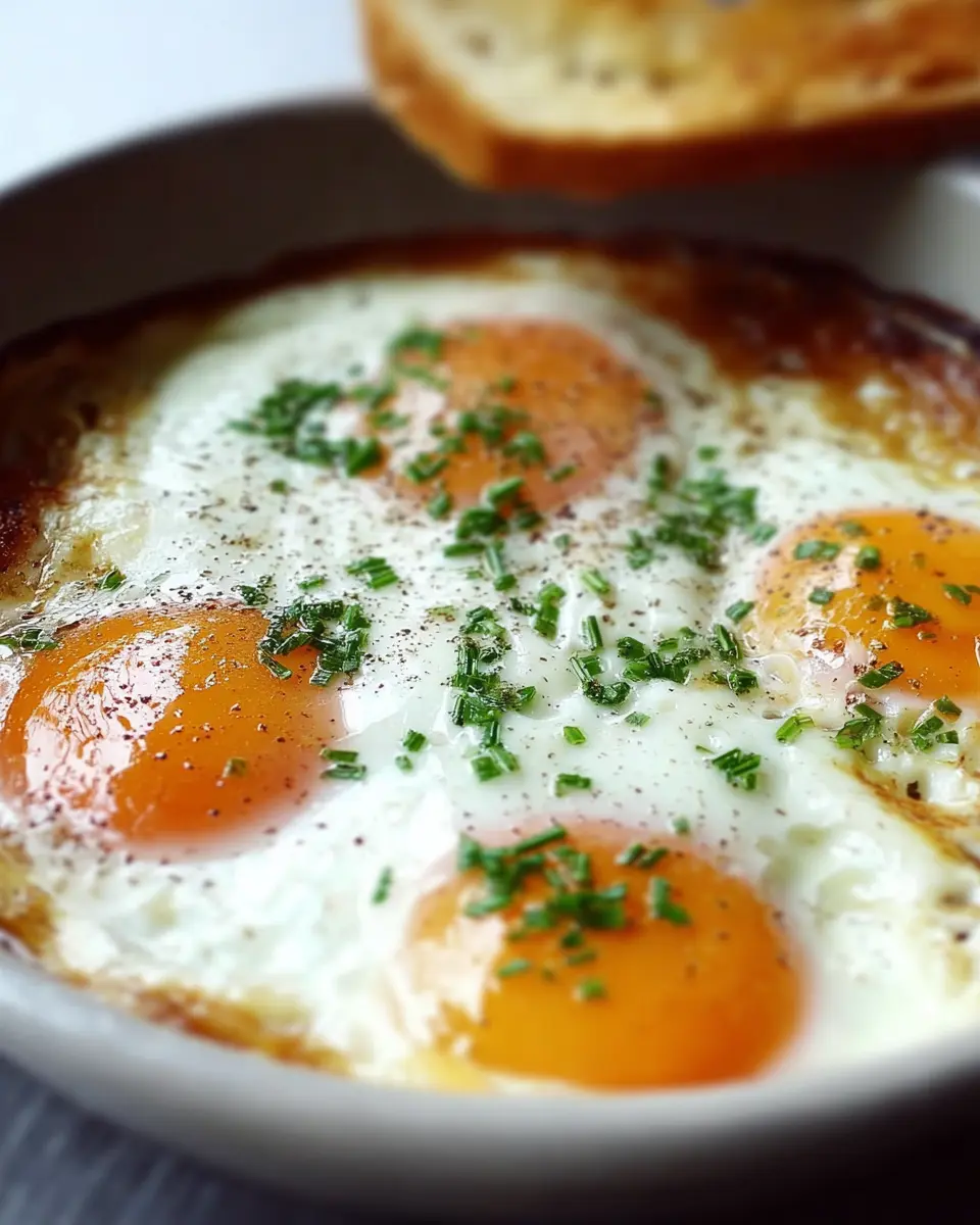 Once your Baked French Eggs are out of the oven, it’s time to elevate their appearance with some fresh herbs! A sprinkle of chives or parsley not only adds color but also a burst of freshness that enhances the dish. Serve them immediately for the best experience. As you dig in, savor the contrast between the rich egg yolk and the crispy edges—a true indulgence!
