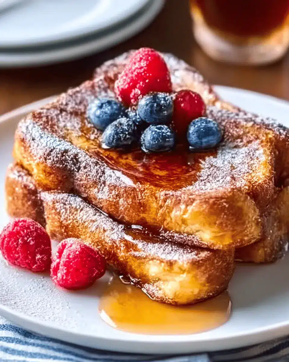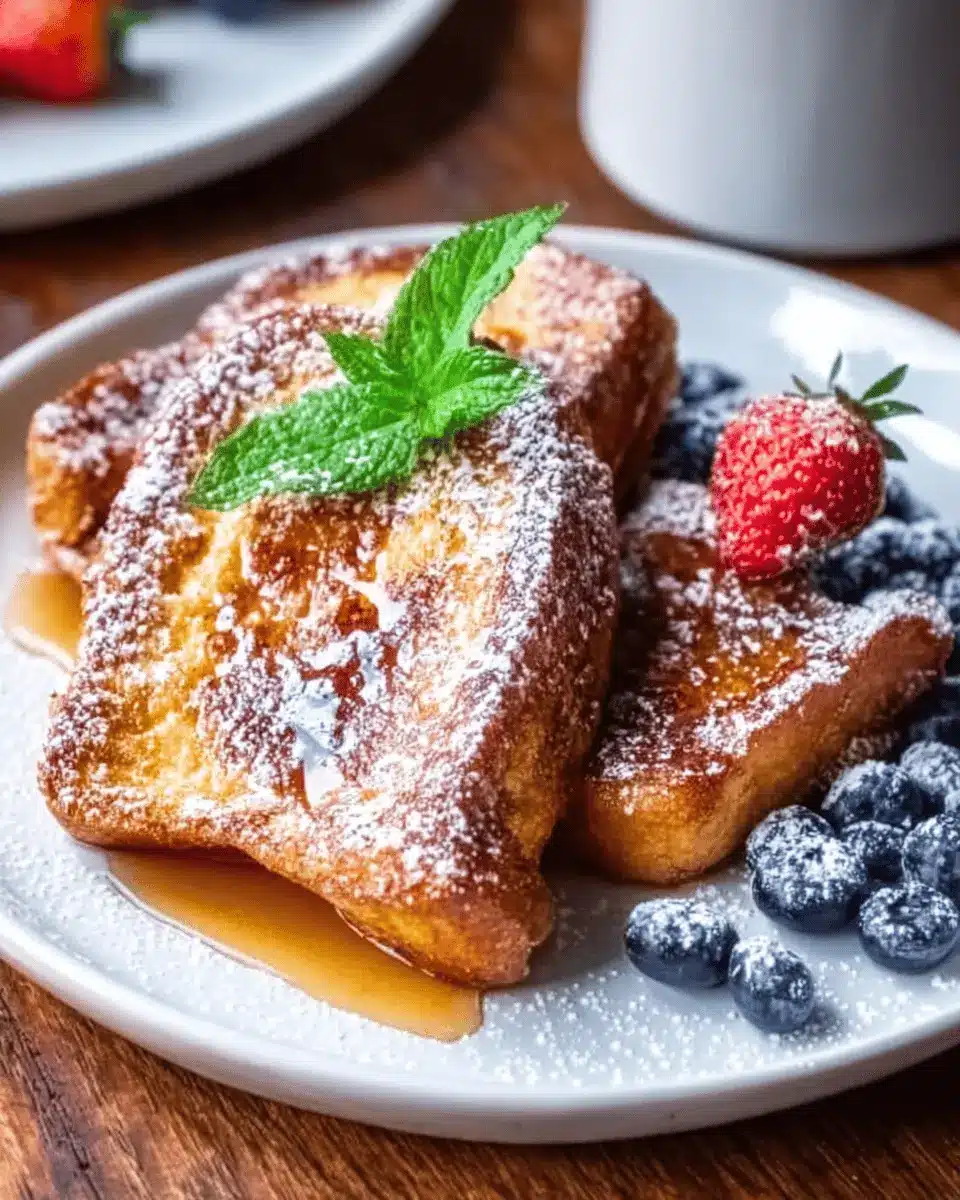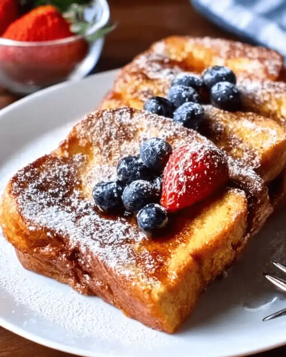 For a refreshing twist, add a medley of berries like strawberries, blueberries, and raspberries. Simply layer the fresh berries between the bread slices before pouring in the egg mixture. The berries will burst with flavor as they bake, creating a delightful topping that’s both colorful and nutritious. This version is perfect for those sunny weekend mornings!