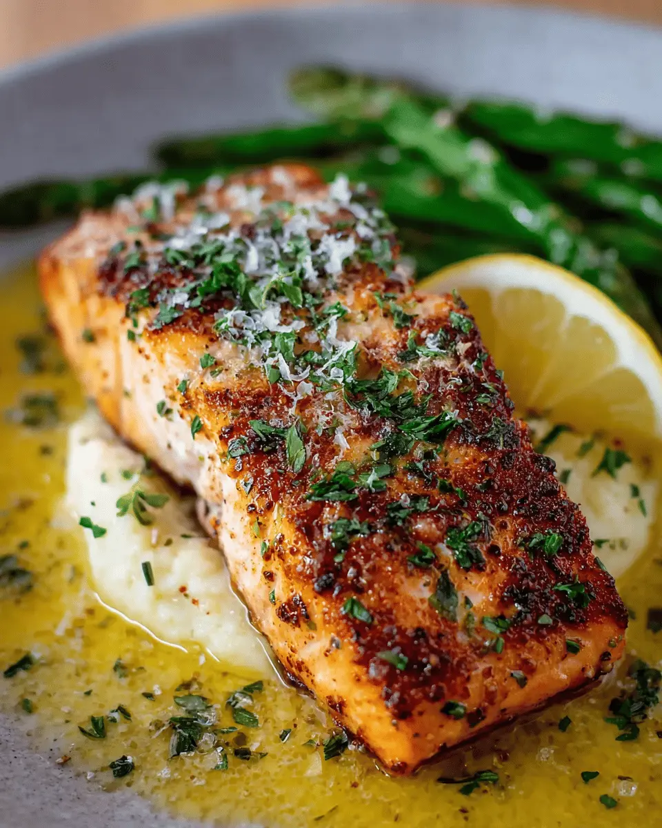 Make your dish pop visually by placing the salmon on a colorful platter garnished with fresh lemon slices and a sprinkle of Italian parsley. Consider stacking the salmon fillet atop a mound of mashed potatoes, then drizzling with the remaining buttery glaze for a restaurant-quality presentation. Use a clean white plate for a lovely contrast that highlights the rich colors of the salmon, making dinner feel truly special.