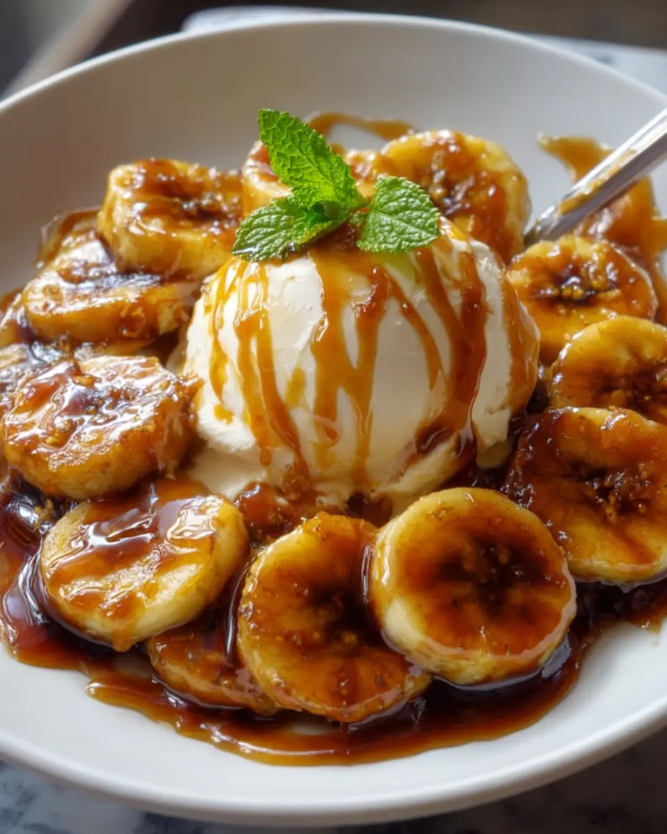 - Serve Immediately: Spoon the warm banana mixture over scoops of vanilla ice cream and serve right away for the best contrast of temperatures and textures.