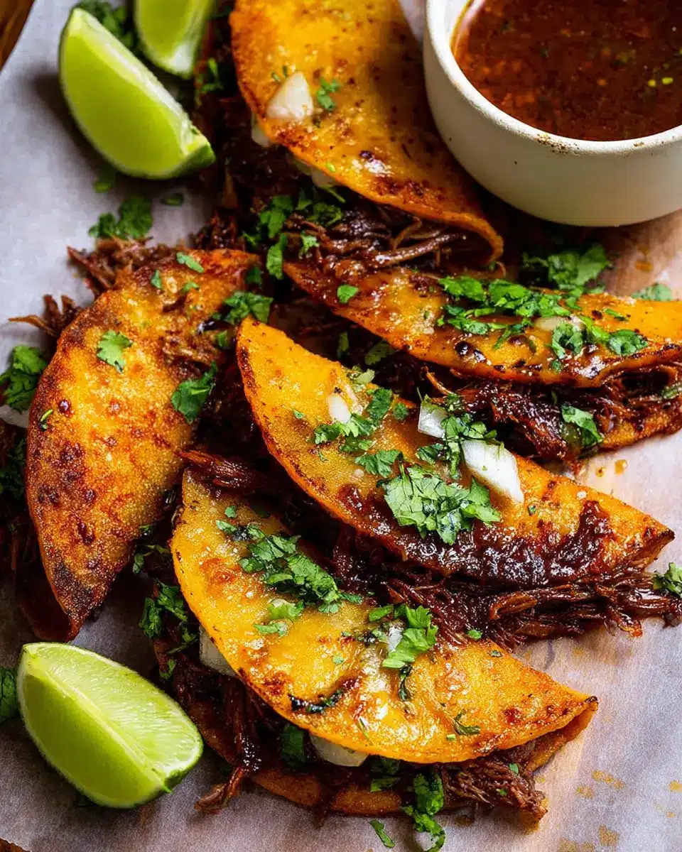 When indulging in Birria Tacos, consider serving them with a variety of tantalizing sides and dips. Freshly made guacamole and zesty pico de gallo add a burst of flavor. Pair it with a cool avocado crema or a spicy salsa verde for a delightful kick. And don’t forget to serve a generous bowl of the rich, aromatic consommé for dipping—it's an essential part of the experience!