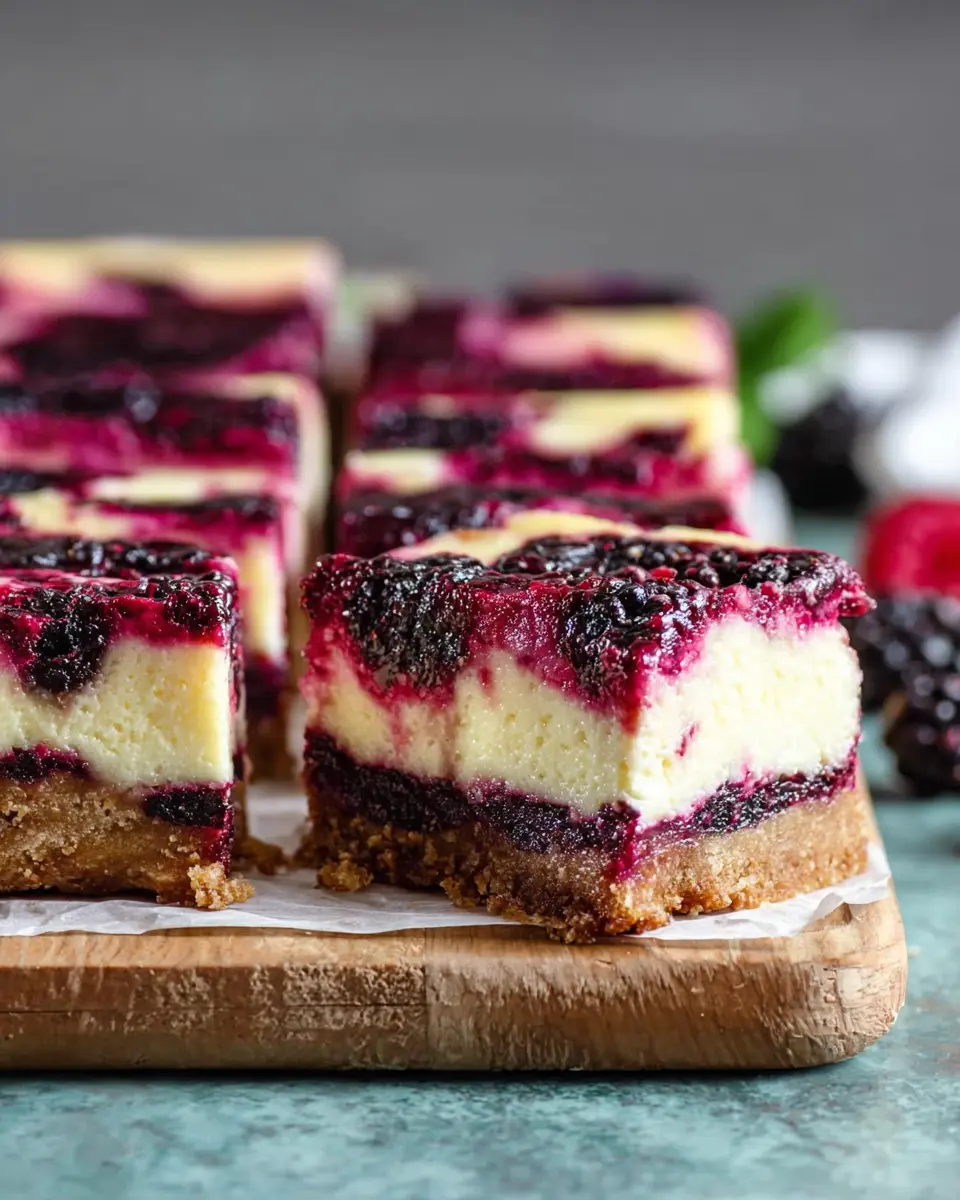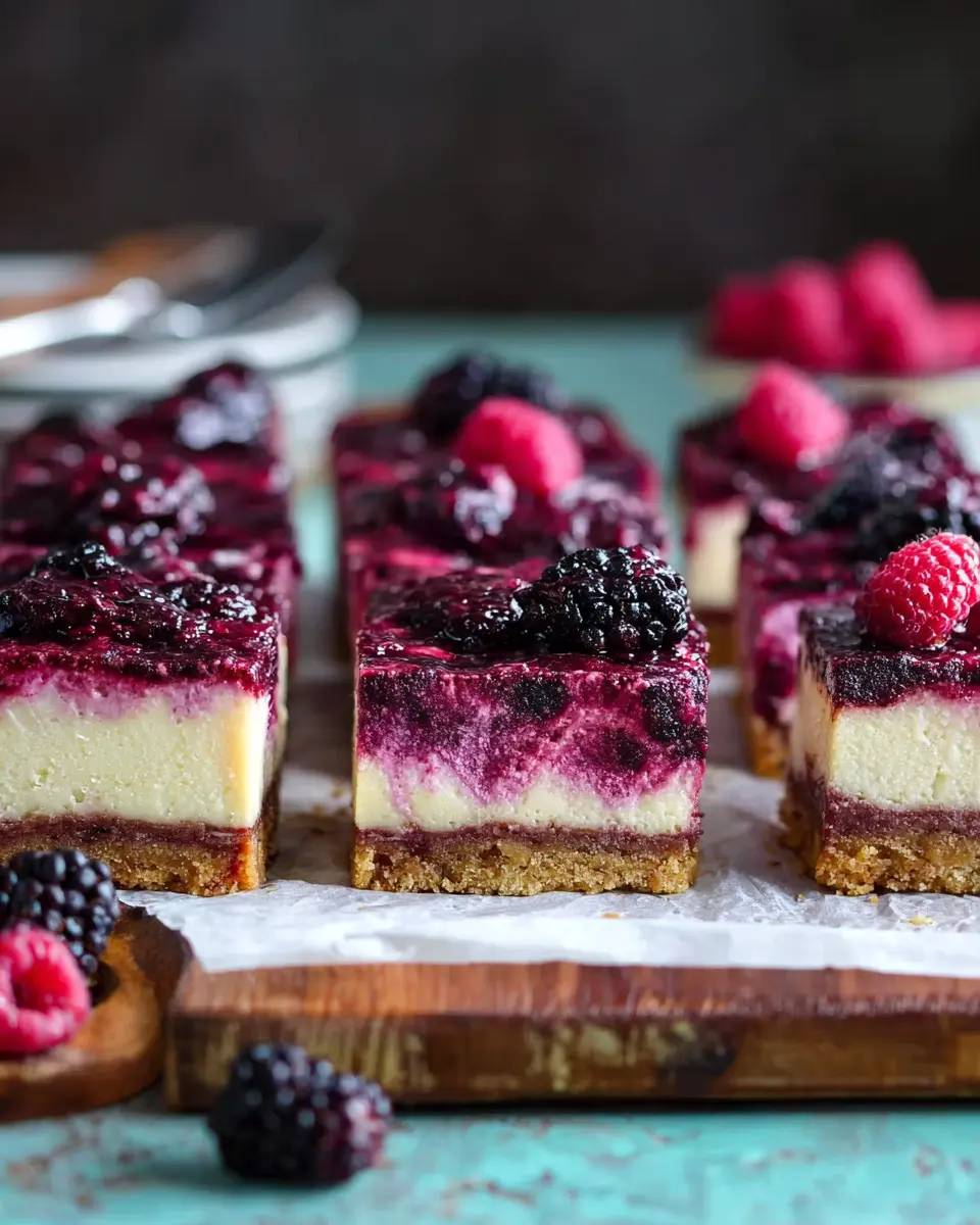 Don’t limit yourself to just black raspberries! You can easily swap in blueberries, strawberries, or raspberries for delightful variations on your cheesecake bars. Each berry lends a unique flavor profile, enriching the creamy filling and making it your own. For instance, strawberries bring a lighter sweetness, while blueberries add a burst of fresh tartness. You could even mix two or more berries together for a stunning, colorful swirl!