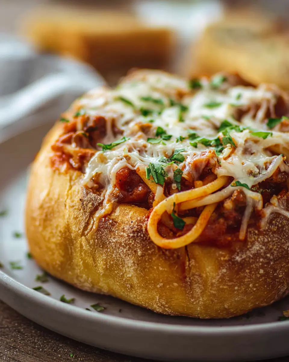 Preheat your oven to 350°F and place your filled rolls inside for about 7-10 minutes, or until they turn a gorgeous golden brown. The smell will be heavenly! Once baked, feel free to garnish with fresh parsley for that extra touch. Serve them hot, and watch as your guests dig in and enjoy the delightful experience of bread bowl spaghetti!