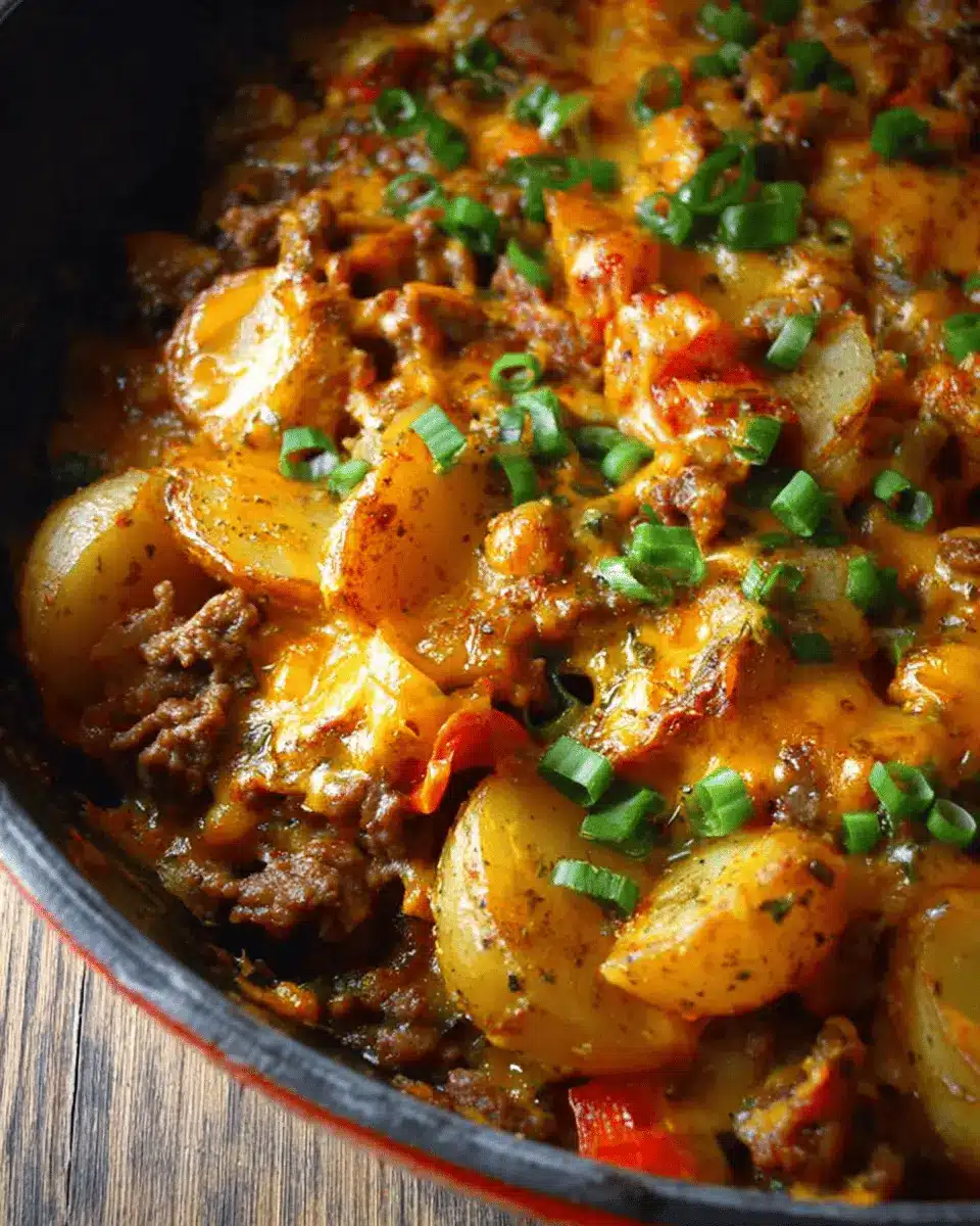 If you’re looking to lighten up your Cheesy One Pot Beef and Potatoes, consider using leaner ground beef or even swapping it for ground turkey. You can also increase the vegetable content by adding more peppers, spinach, or kale. For a lower-carb option, try substituting regular potatoes with sweet potatoes or cauliflower. Check out this article for more healthy ingredient swaps!