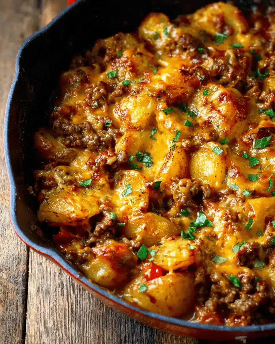 In conclusion, cheesy one pot beef and potatoes offers a seamless blend of convenience and flavor. Perfect for busy weeknights, this dish comes together in about 30 minutes while delivering a comforting, hearty experience. Try it today, and let's bring back delicious home-cooked meals to your kitchen!