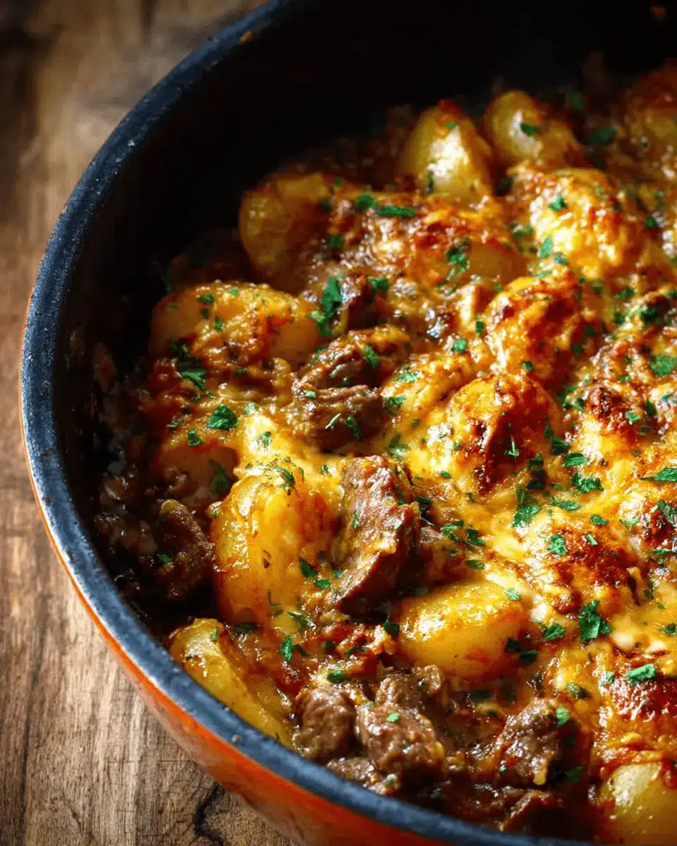 For a meat-free option, try substituting with plant-based meat alternatives like lentils, tofu, or your favorite store-bought meat substitute. These choices add texture and protein, ensuring everyone can enjoy this delicious dish. Add in some extra vegetables, like spinach or kale, to boost the nutrition factor while maintaining the essence of the beloved cheesy one pot beef and potatoes.