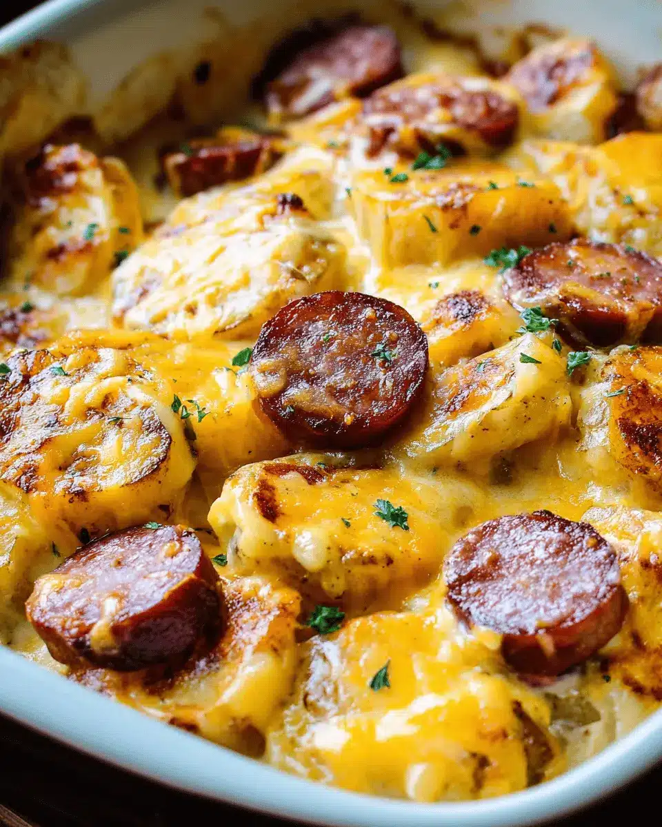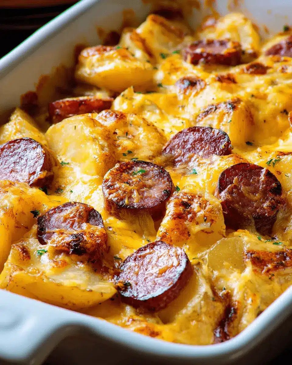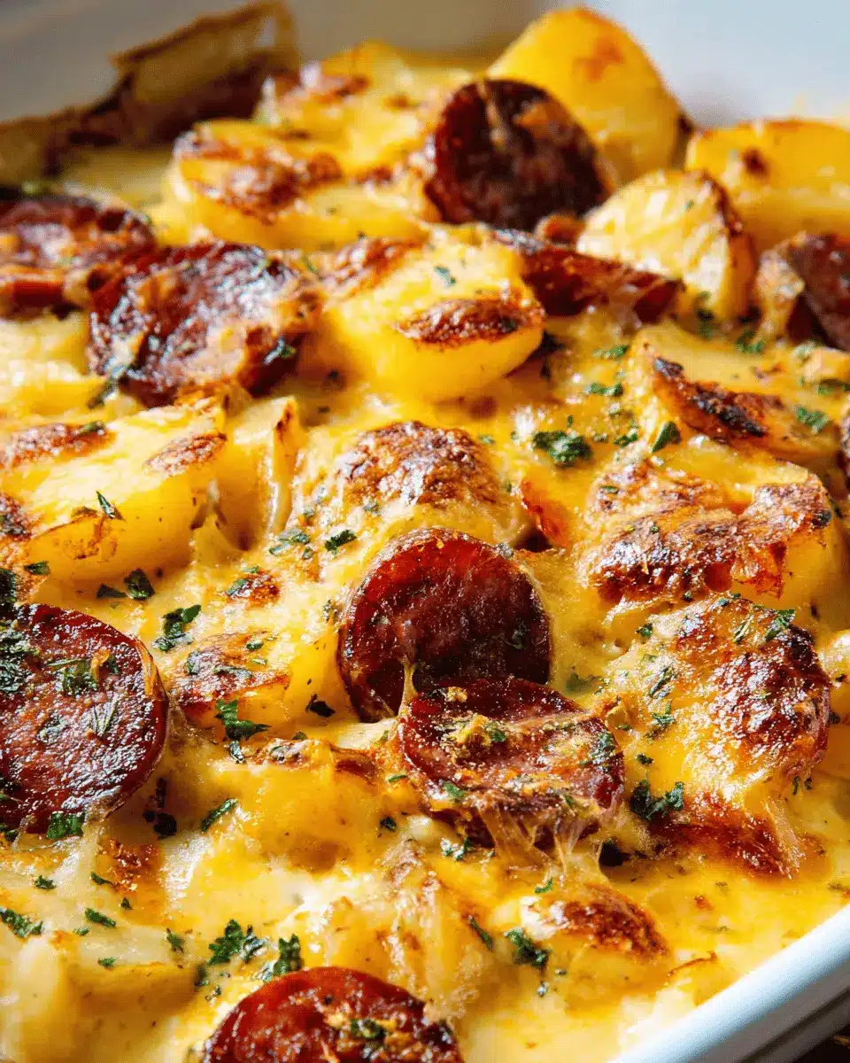 Introduction to Cheesy Potatoes with Smoked Sausage