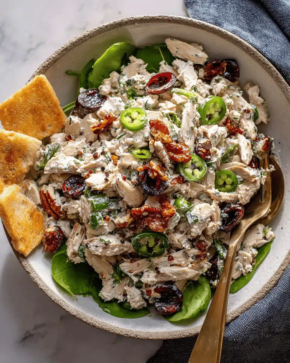 According to health experts, incorporating lean proteins like shredded chicken and nuts like sliced almonds can support a balanced diet. This cherry jalapeno twist not only satisfies your cravings but also adds a nutritious boost. If you’re curious to explore more creative chicken salad variations, check out this article from the American Heart Association.