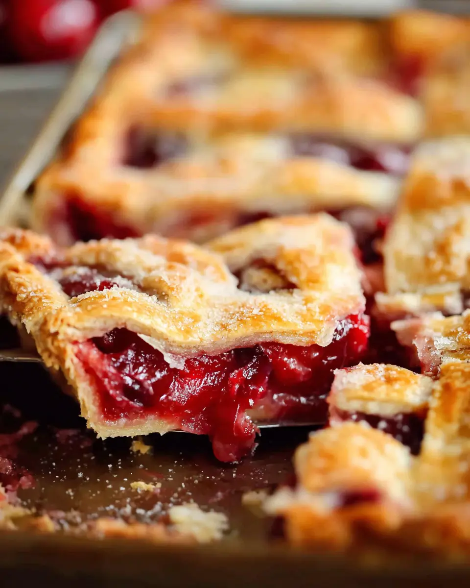 Why stop at cherries? You can play with various fruit fillings to give your slab pie a fresh twist! Consider using blueberries, peaches, or even a mixed berry blend for bright flavors. A great option is apricots, which provide a tangy zest. If you want something unique, try a savory option with plums or even a combination of raspberries and blackberries for an exciting tartness. The versatility of the slab pie makes experimenting with fillings easy and fun!