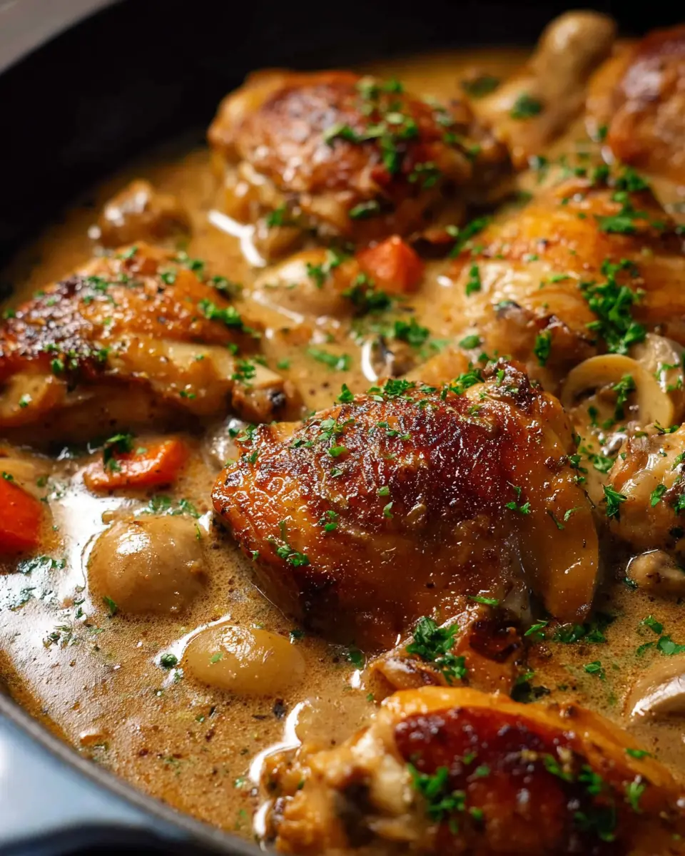 To achieve a rich and creamy chicken fricassée, always use skin-on and bone-in chicken. This not only enhances flavor but also ensures your chicken remains juicy. Don't skip the browning step—this caramelizes the chicken and adds depth to your sauce. Make sure to scrape up the brown bits in the pan; they’re packed with flavor and will elevate your dish.