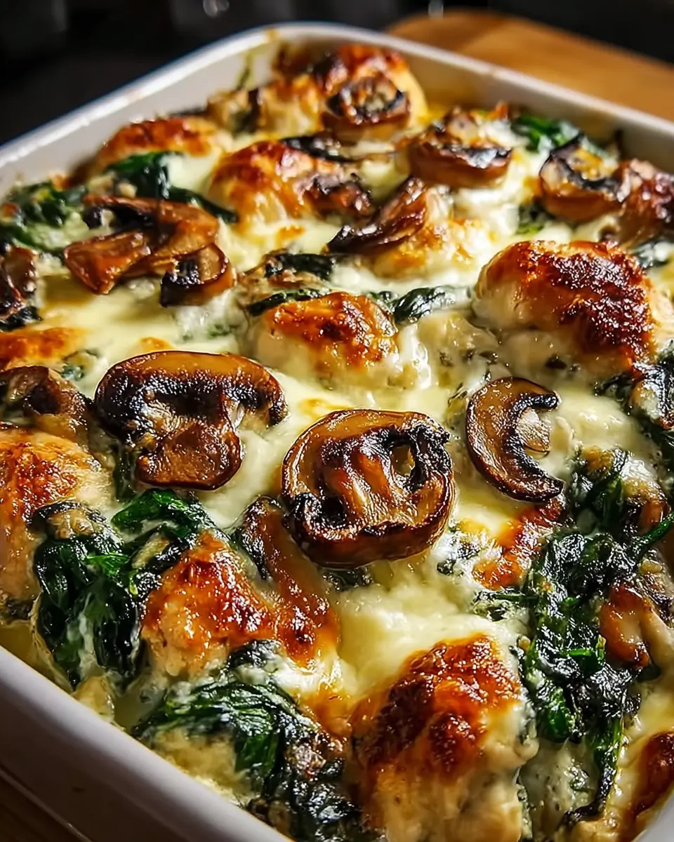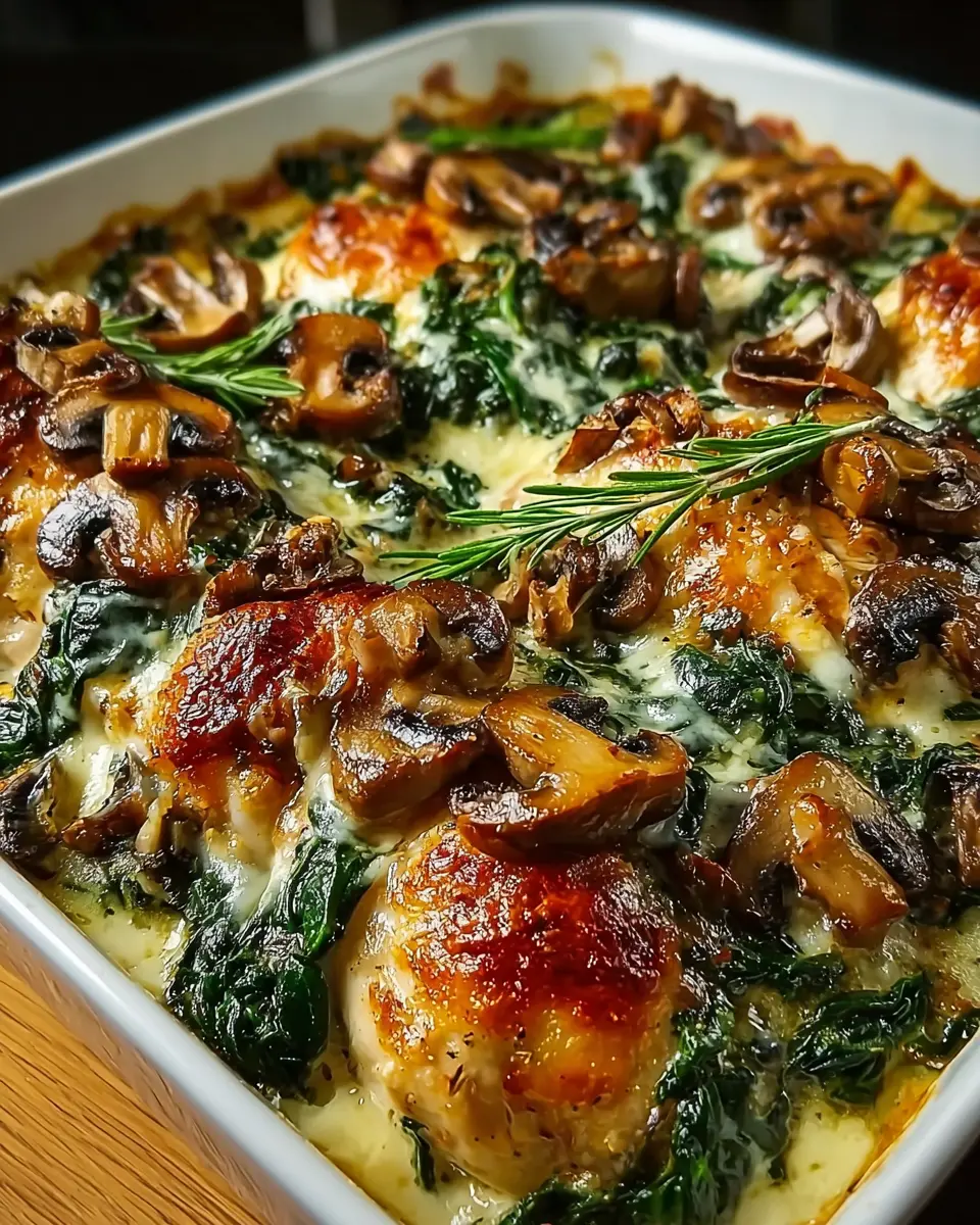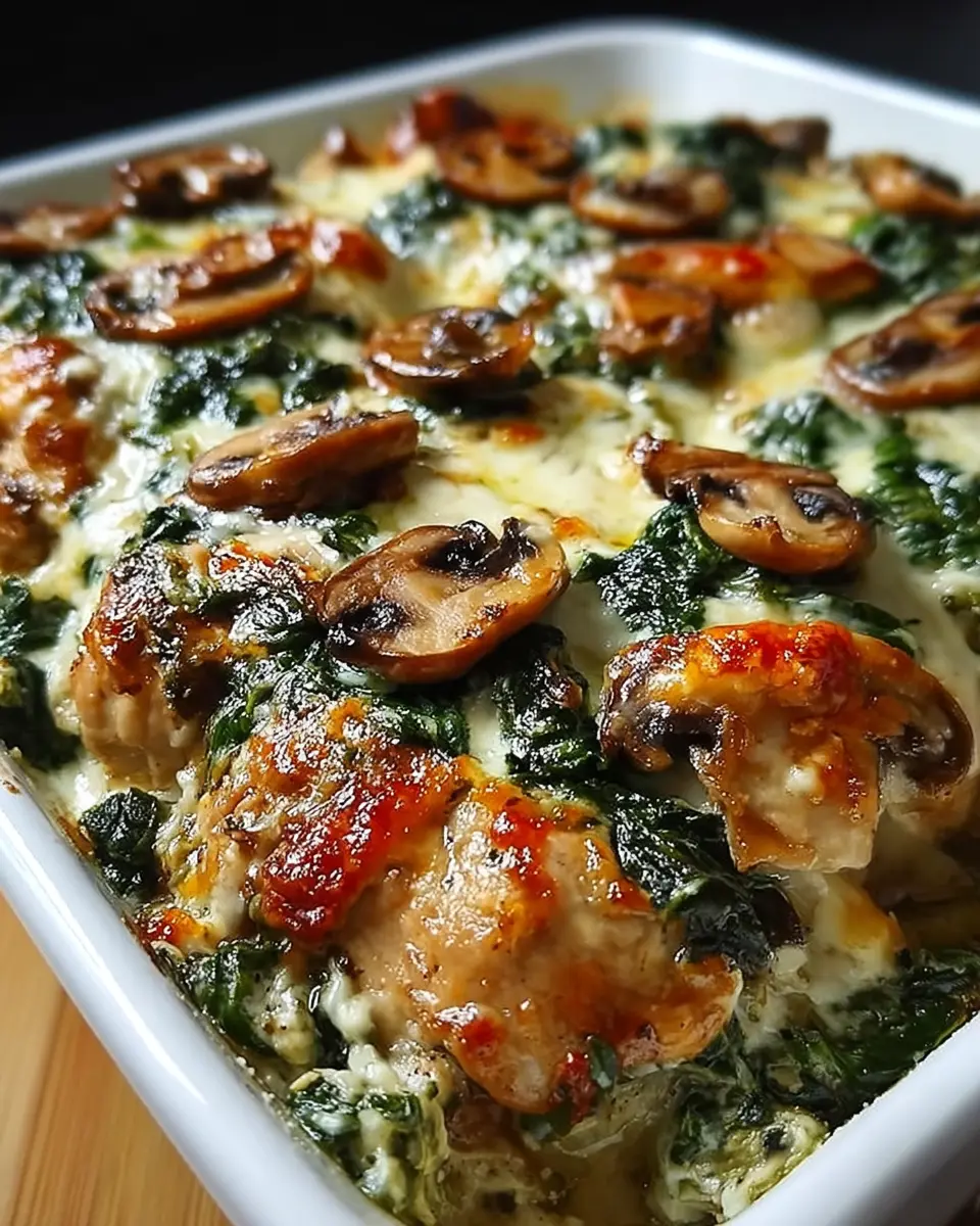 Not only is it easy and quick to prepare, but this oven dish can also be an excellent centerpiece for family dinners or meal prep for the week ahead. The well-rounded mix of chicken, spinach, and mushrooms not only packs a nutritional punch but also fills your kitchen with an irresistible aroma. The rich, creamy texture will have even the pickiest eaters coming back for seconds!