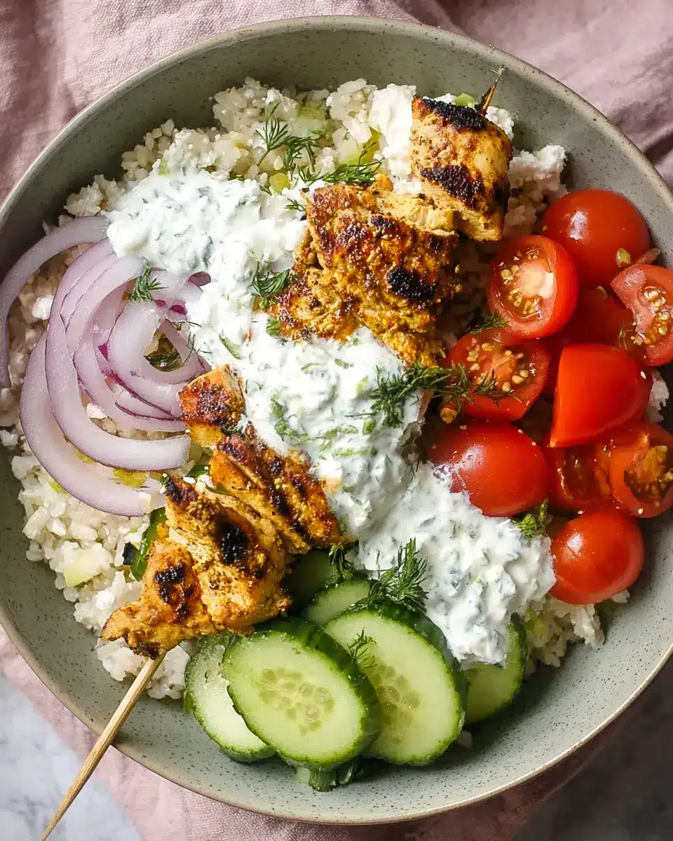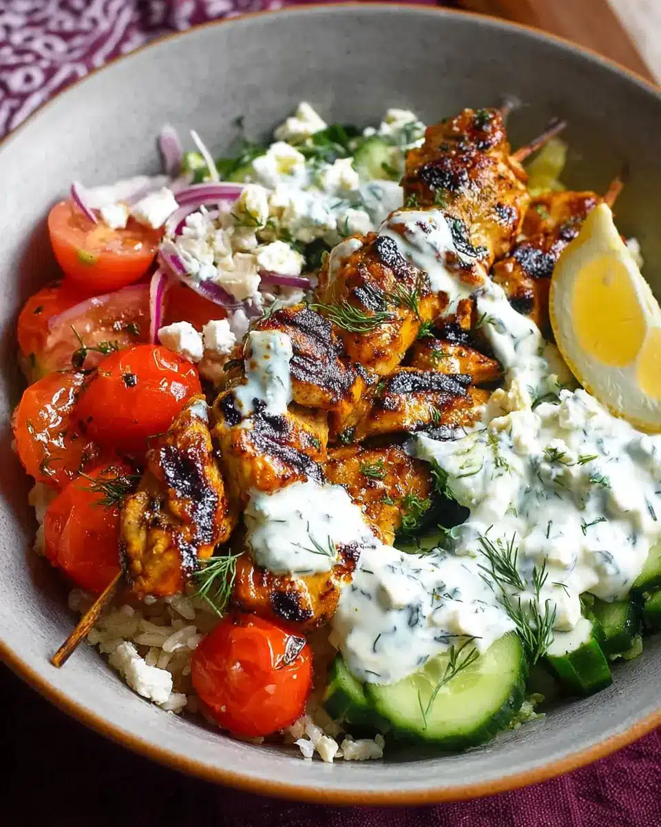 For a delicious vegetarian take on your Chicken Tzatziki Bowls, pack in some grilled vegetables. Think bell peppers, zucchini, or eggplant! Toss them in olive oil and your favorite spices before grilling. These vibrant veggies will not only add color but also a smoky flavor that complements the creamy tzatziki perfectly. You can replace the quinoa with farro or couscous for even more variety! Engage your kitchen creativity and enjoy customizing these bowls to suit your tastes!