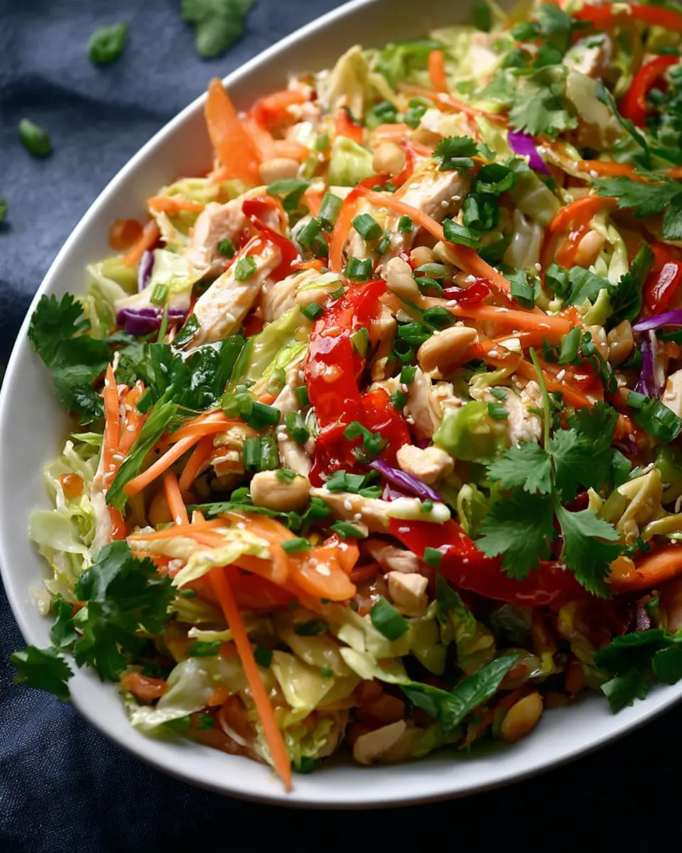 Your Chinese Chicken Salad is ready to enjoy! For the best taste and texture, serve it right away. The crisp veggies and tender chicken are best enjoyed fresh, making it a perfect light meal or a hearty side dish. If you're feeling adventurous, try serving it in lettuce wraps for a fun twist!