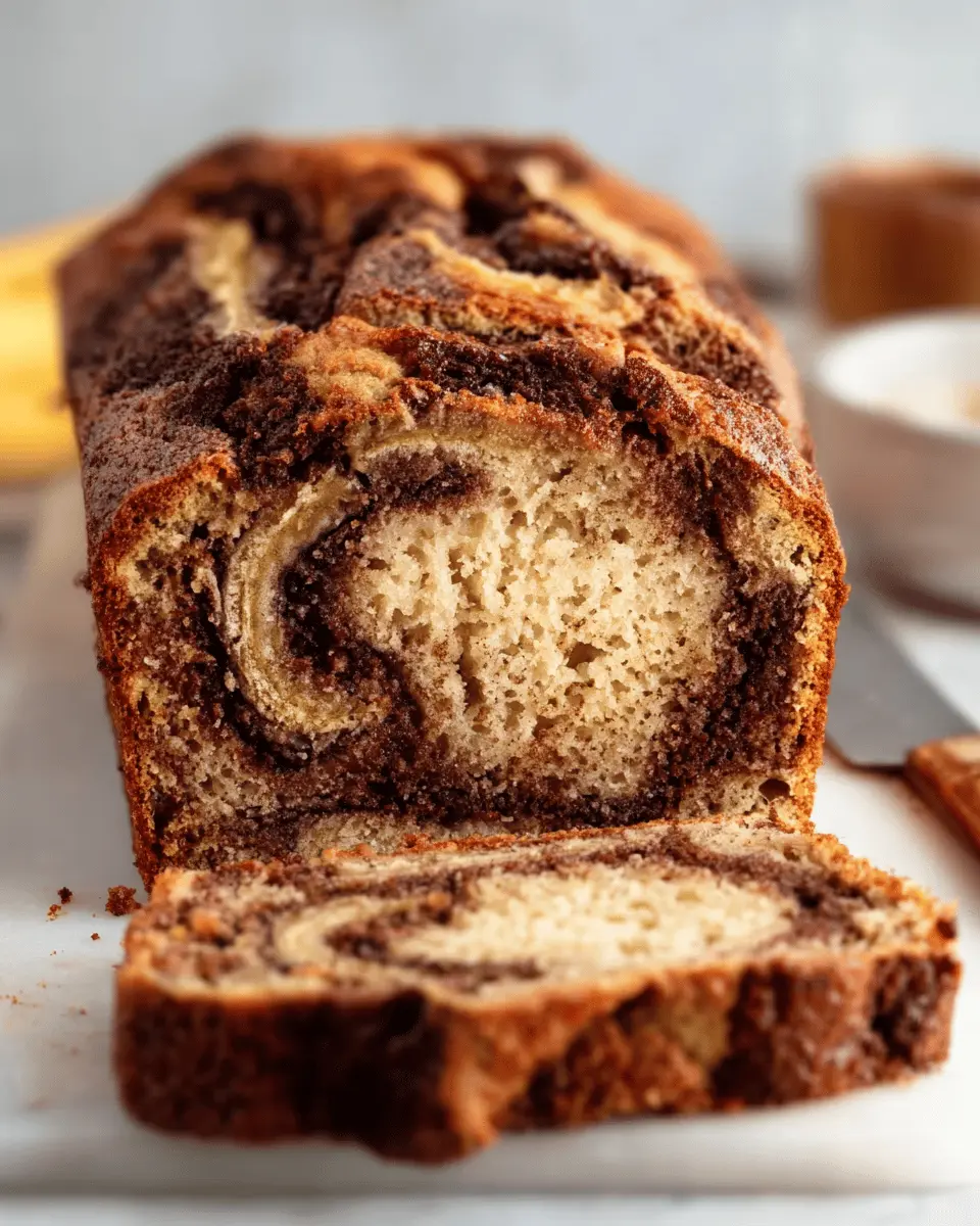 And there you have it! Your cinnamon swirled banana bread masterpiece awaits, perfect for sharing with friends or savoring on your own with a warm cup of coffee. Enjoy!