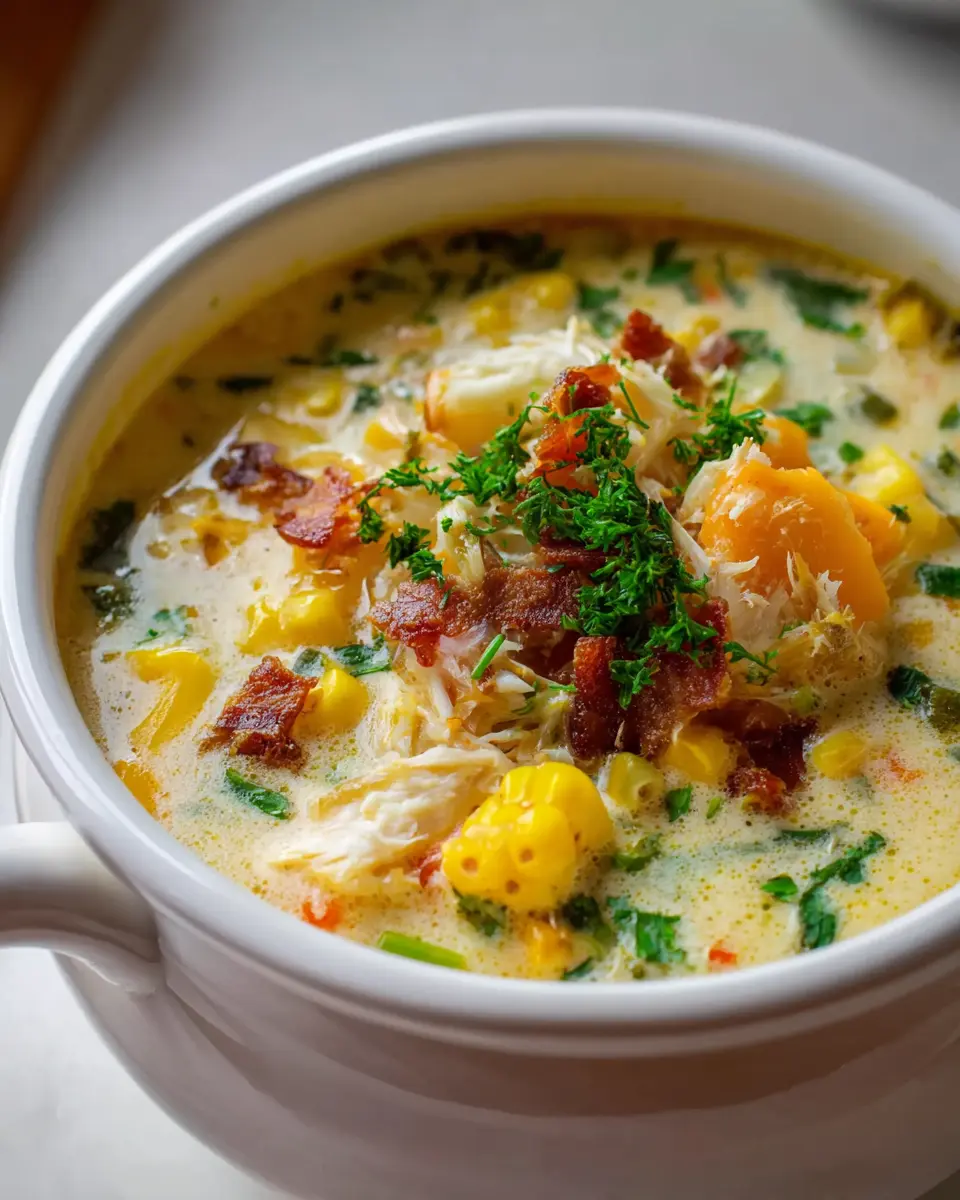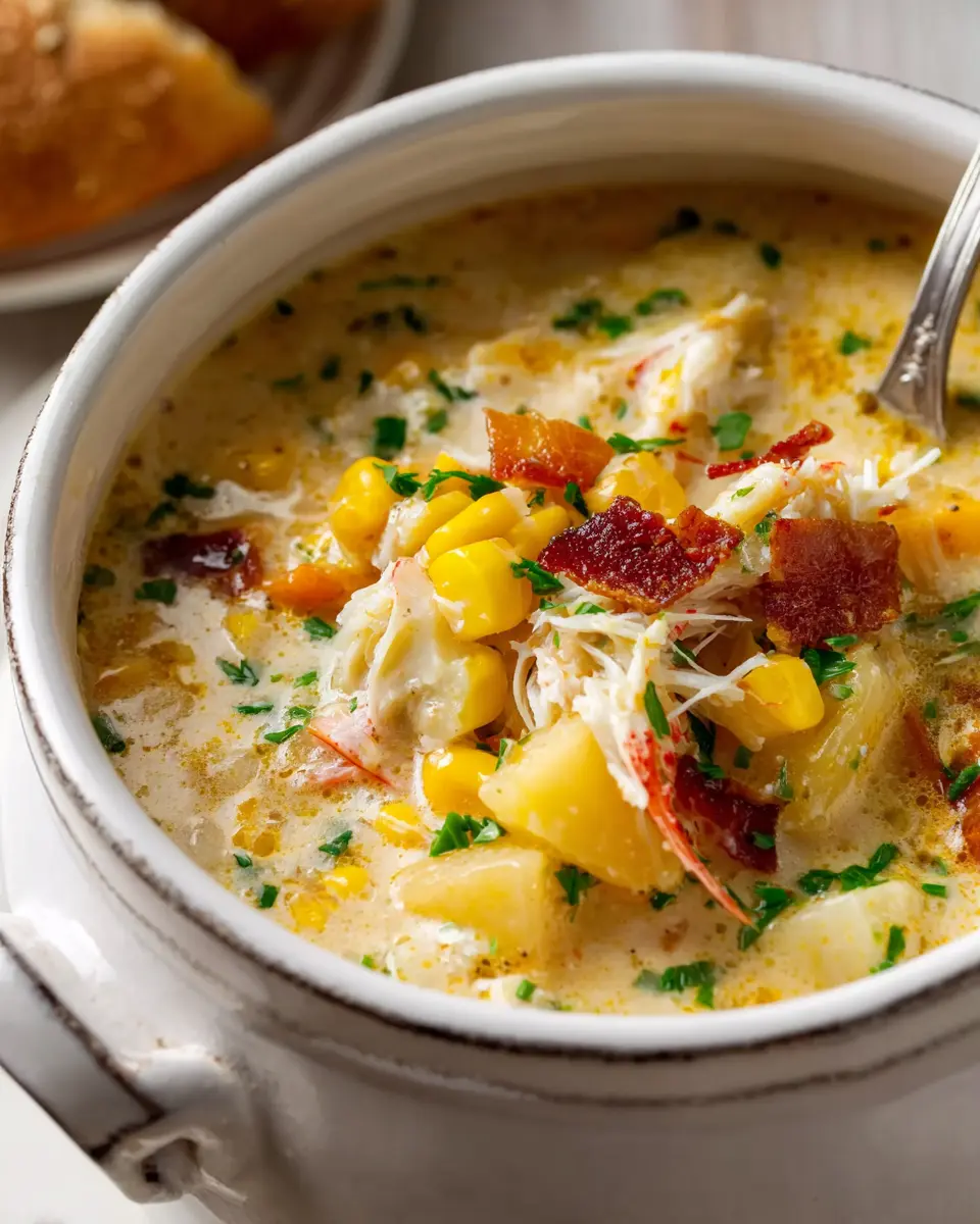 Don’t worry if you have dietary restrictions! For a lighter alternative, substitute heavy cream with coconut milk for a healthier, dairy-free chowder. If you’re avoiding turkey bacon, consider using chicken ham or smoked tempeh for a savory kick. You can easily make this chowder gluten-free by using a gluten-free chicken stock. Explore these options and make this crab and corn chowder your own! For more substitution ideas, check out The Spruce Eats.