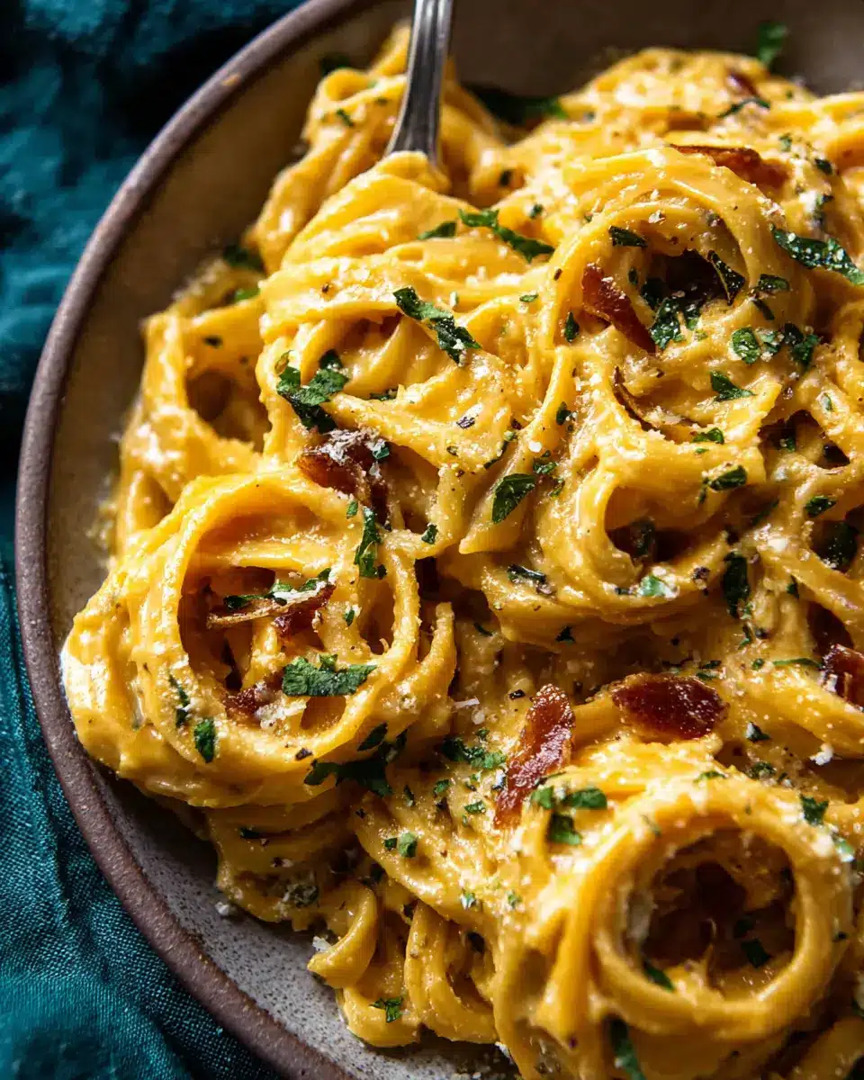 Creamy Roasted Garlic Butternut Squash Pasta.