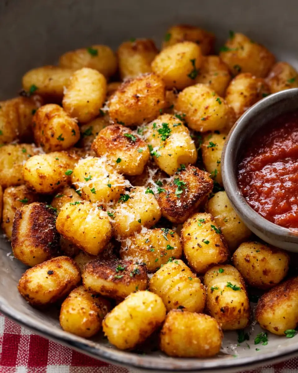 Once your gnocchi is perfectly crisp, it’s time to serve! You can enjoy them as a stand-alone snack, pair them with marinara sauce, or even toss them in a salad as a delightful crunch factor. Finish with a sprinkle of grated Parmesan and some fresh parsley for that extra flair.