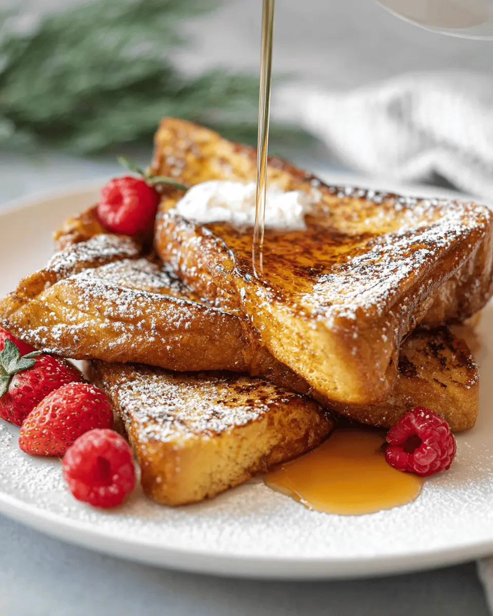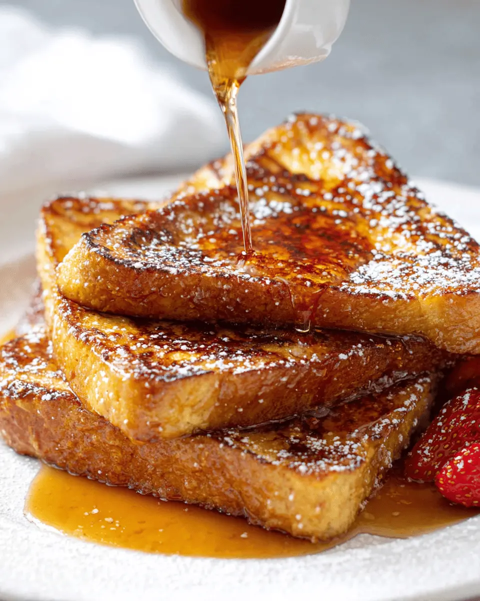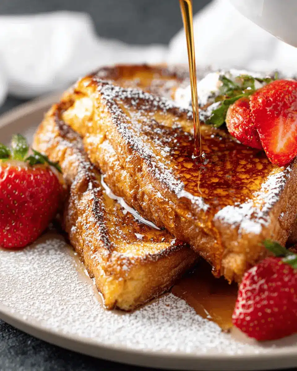 Once all slices are cooked, sprinkle them with powdered sugar right before serving. A drizzle of pure maple syrup ties everything together beautifully. You could also add fresh fruits like strawberries or bananas for a colorful twist. Your French toast is now ready to impress!