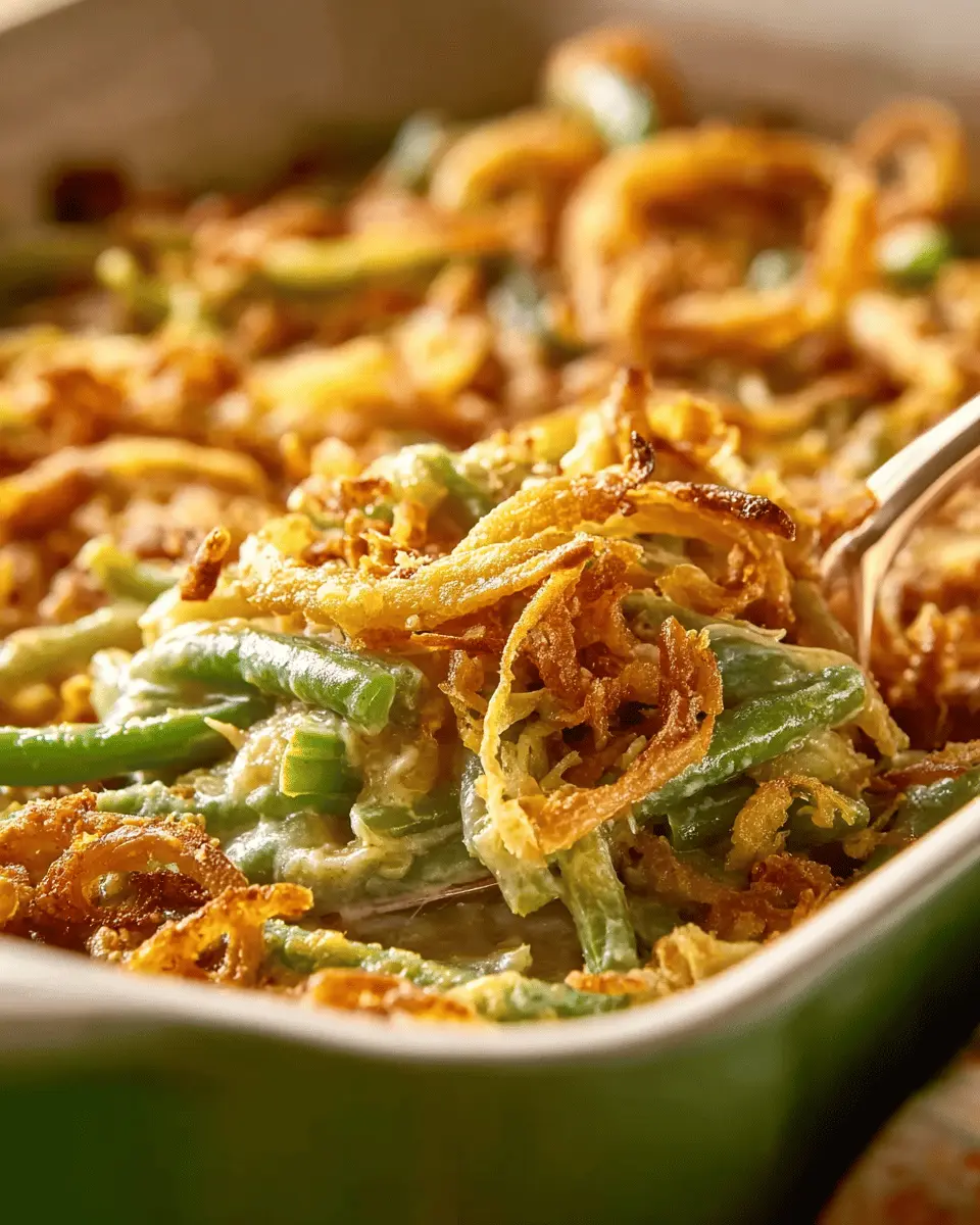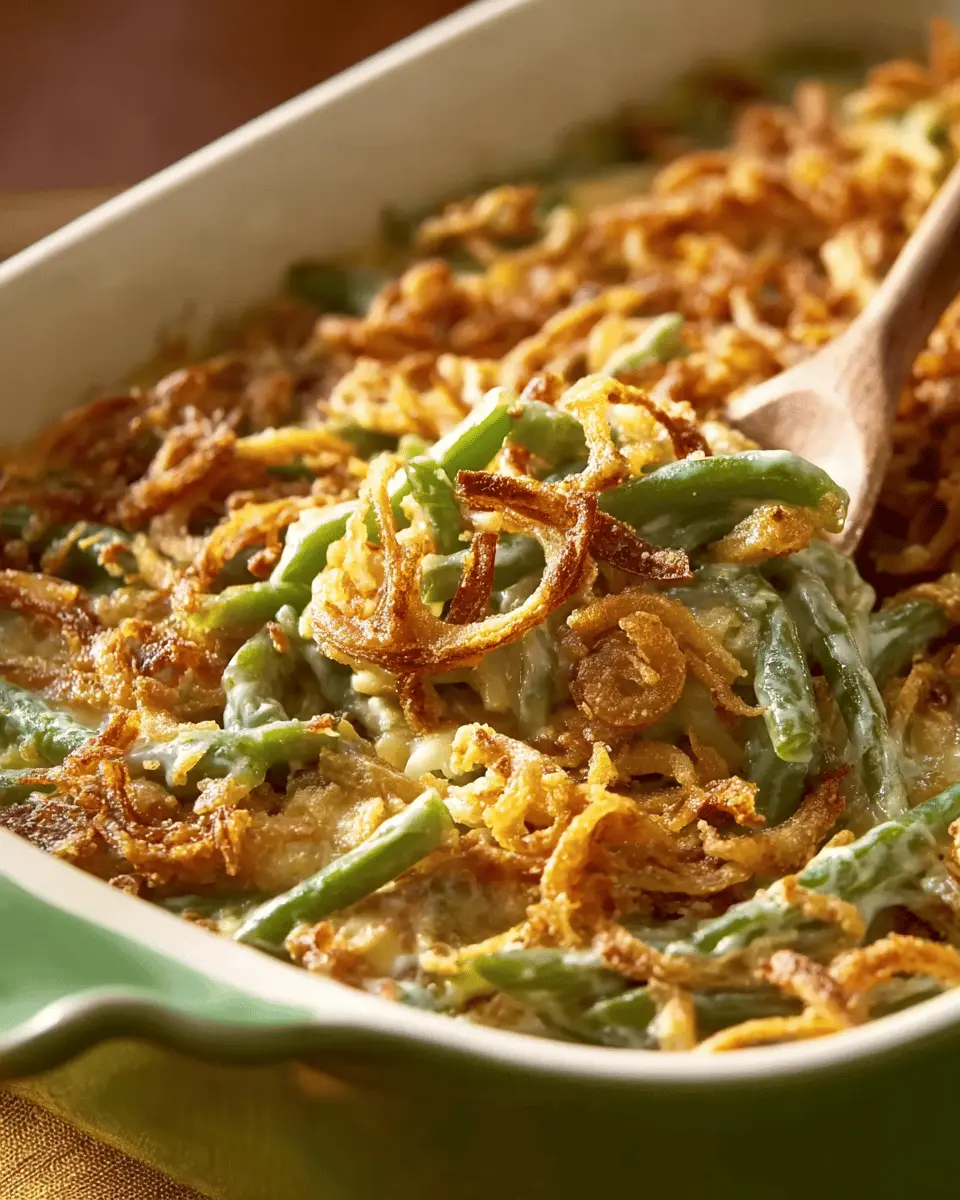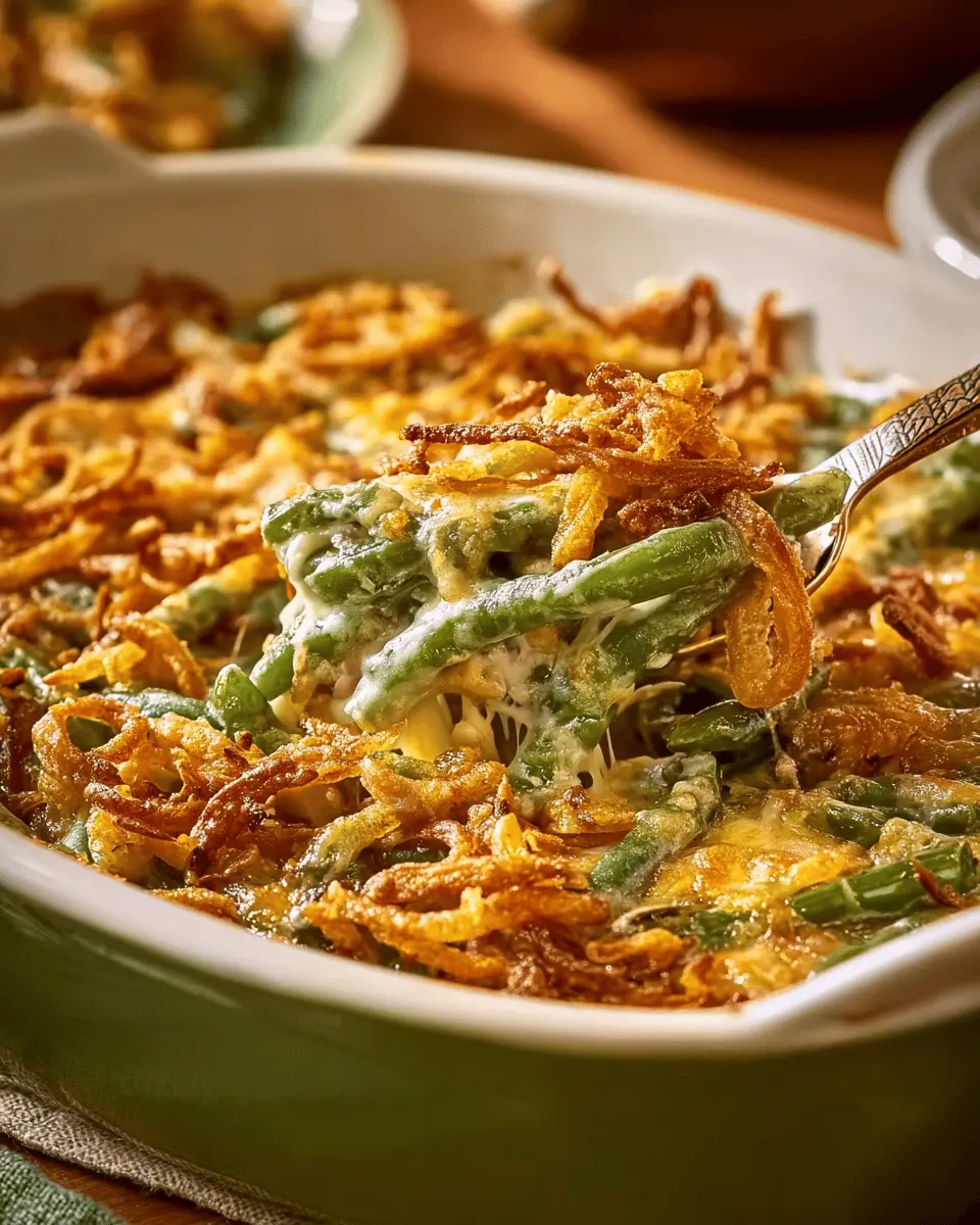 Green bean casserole is a classic comfort food that embodies the spirit of shared meals and holiday gatherings. Its creamy texture and crunchy topping make it irresistible, while its simplicity allows anyone to whip it up. Perfect for Thanksgiving or any family dinner, this dish always delights!