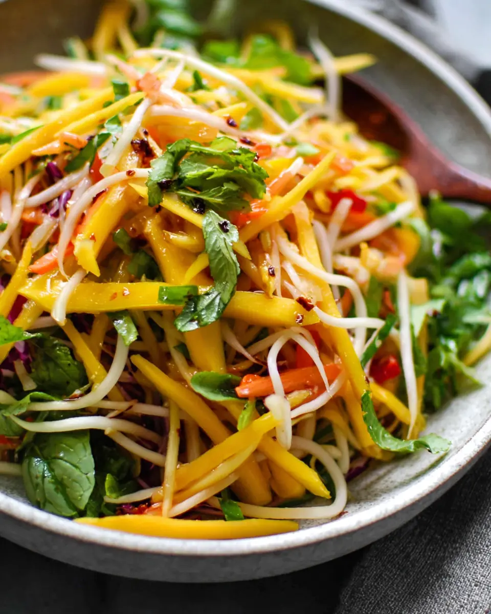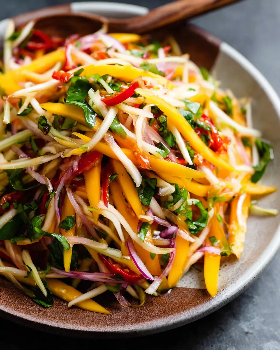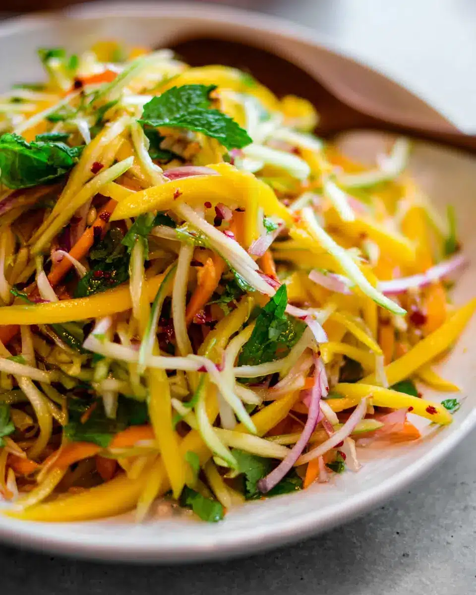 While it's tempting to make a big batch of this delightful green Thai mango salad, remember that it's best enjoyed fresh. Ideally, serve it right after preparation. However, if you need to store it, keep it in an airtight container in the fridge for up to 24 hours. After that, the mangoes can start to lose their crunch and freshness. For optimal taste, make the dressing ahead of time and add it just before serving!