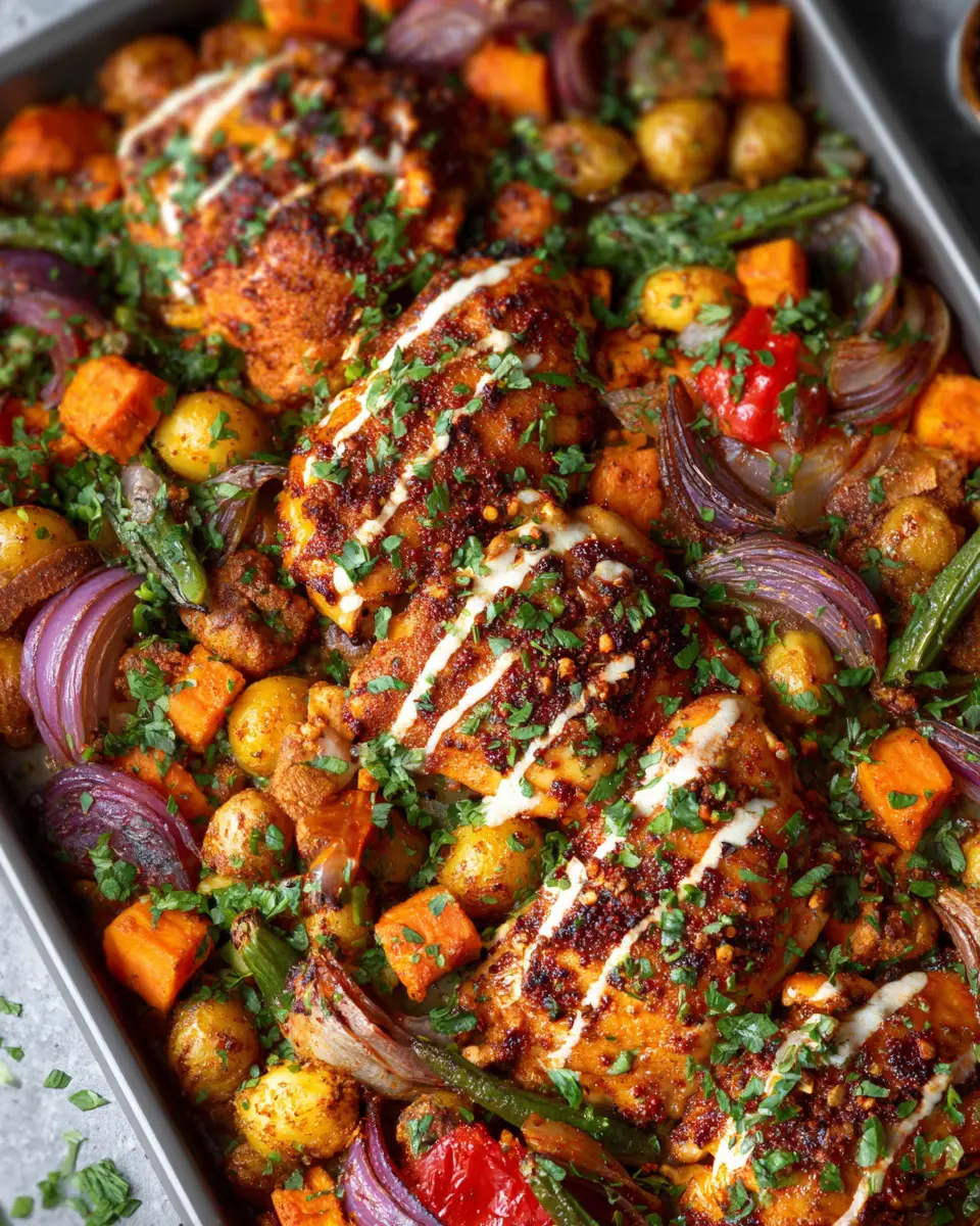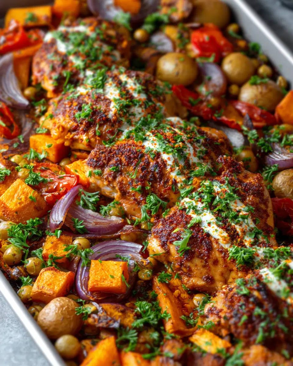 Cooking doesn’t have to be complicated! With the Harissa Sheet Pan Chicken & Veggies, you can whip up a flavorful and satisfying meal with minimal fuss. Here’s how to make it step-by-step: