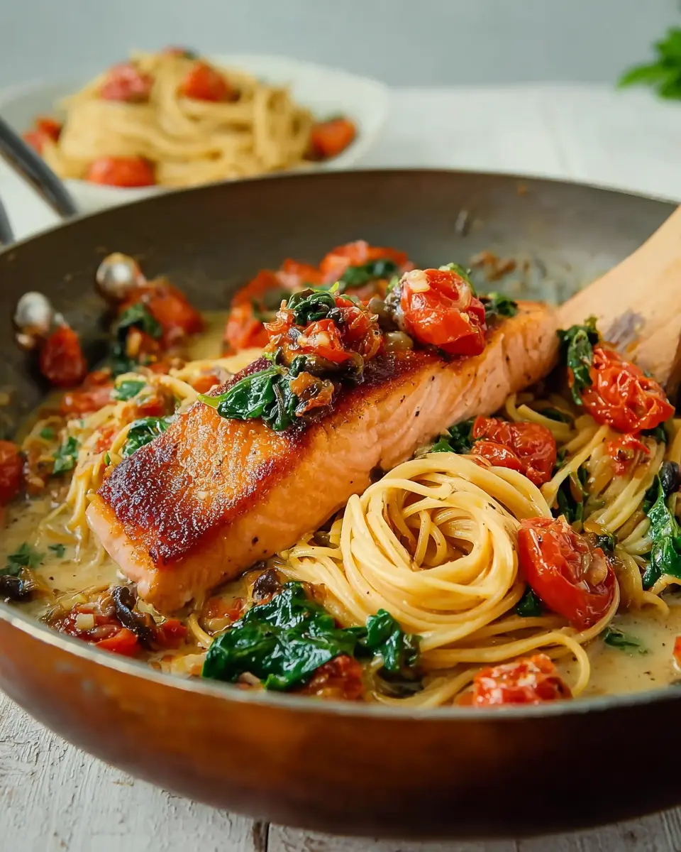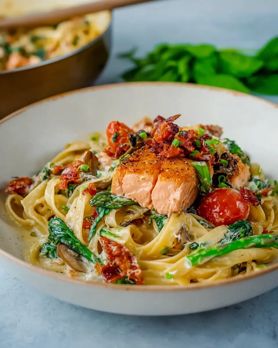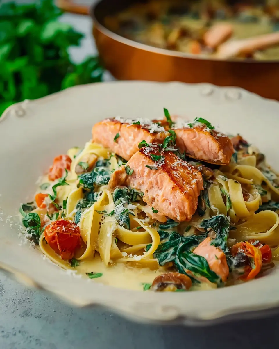 Healthy & Creamy Tuscan Salmon Pasta