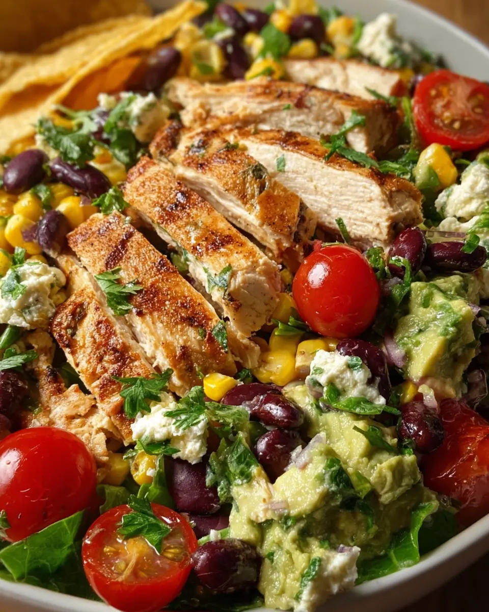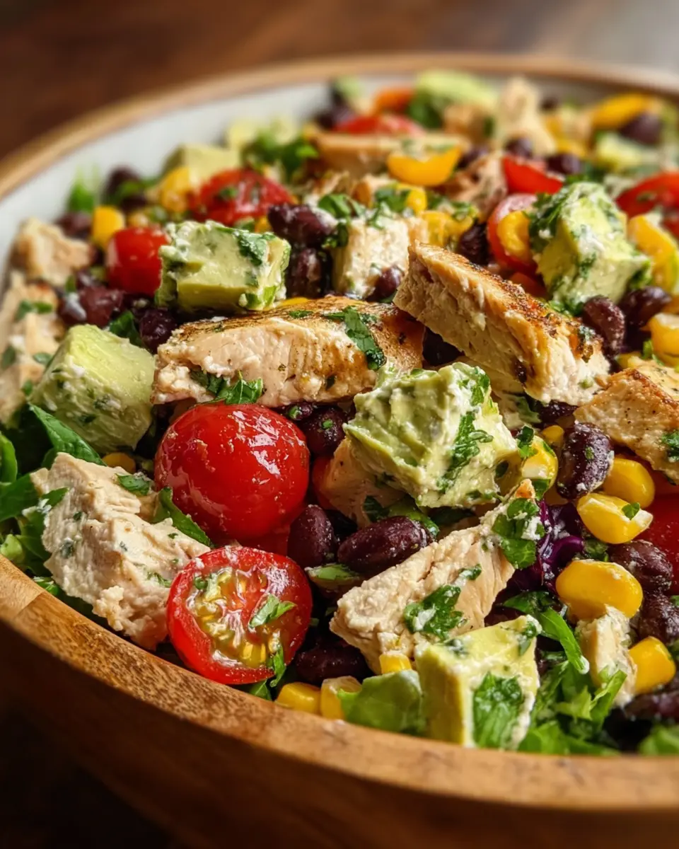 This high protein southwest chicken salad is not only a colorful meal but also a powerhouse of nutrients. Packed with lean protein from chicken and fiber from beans, it supports muscle recovery and keeps you full longer.
