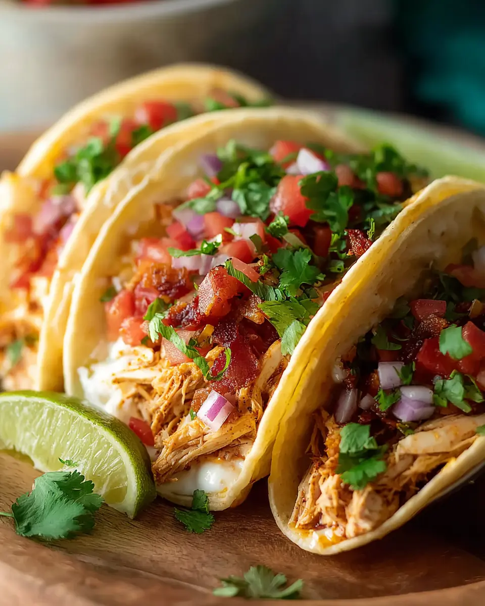 What sets these tacos apart? First, the slow-cooked chicken, infused with chipotle powder and cream cheese, creates a rich, creamy texture that’s bound to tantalize your taste buds. The addition of crispy turkey bacon and fresh diced tomatoes adds a delightful crunch and brightness to each bite.