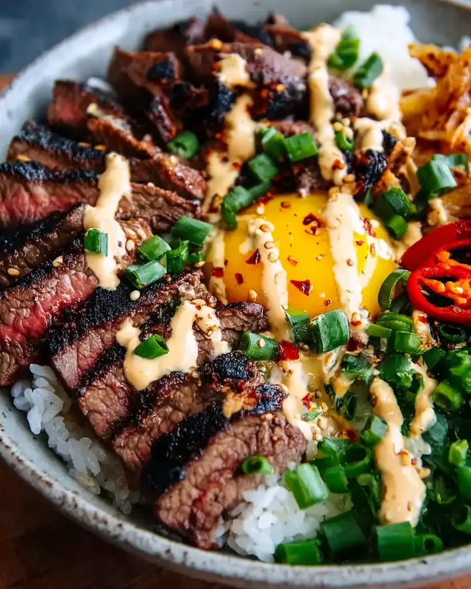 To elevate your Korean BBQ Steak Rice Bowls, consider adding a splash of sesame oil to the rice for a nutty aroma or tossing in fresh herbs like cilantro for brightness. For those who love heat, a sprinkle of red pepper flakes on top can really kick things up a notch. Also, think about experimenting with different marinades, like adding miso or Korean chili flakes, to make your flavors pop even more. Enjoy customizing to your taste!