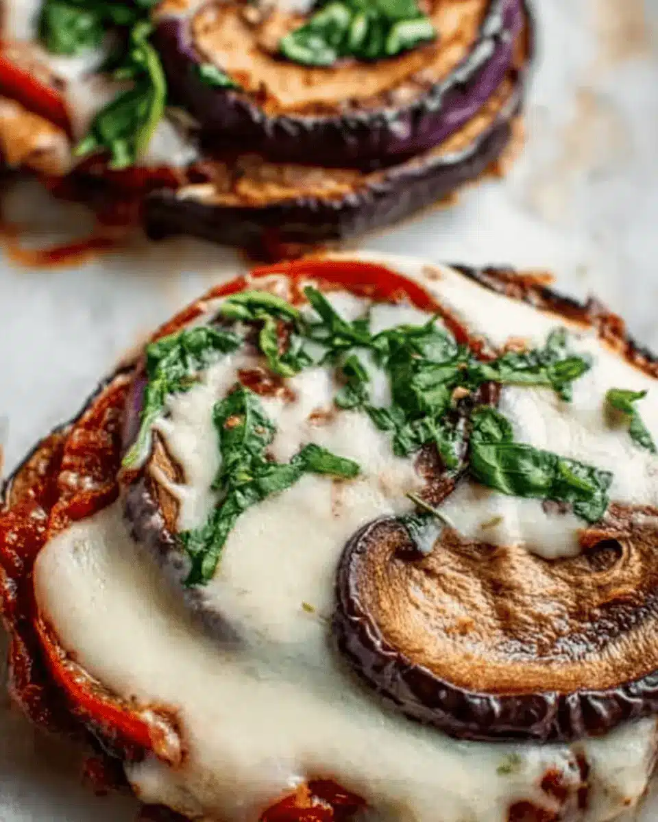 For a Mediterranean twist, consider topping your eggplant pizzas with a mix of artichokes, olives, and feta cheese. Drizzle with a bit of extra virgin olive oil and a sprinkle of oregano to elevate the taste. This variation not only adds delightful Mediterranean flavors but also introduces a hearty dose of healthy fats and nutrients. Perfect for a delightful lunch or an appetizer at your next gathering!