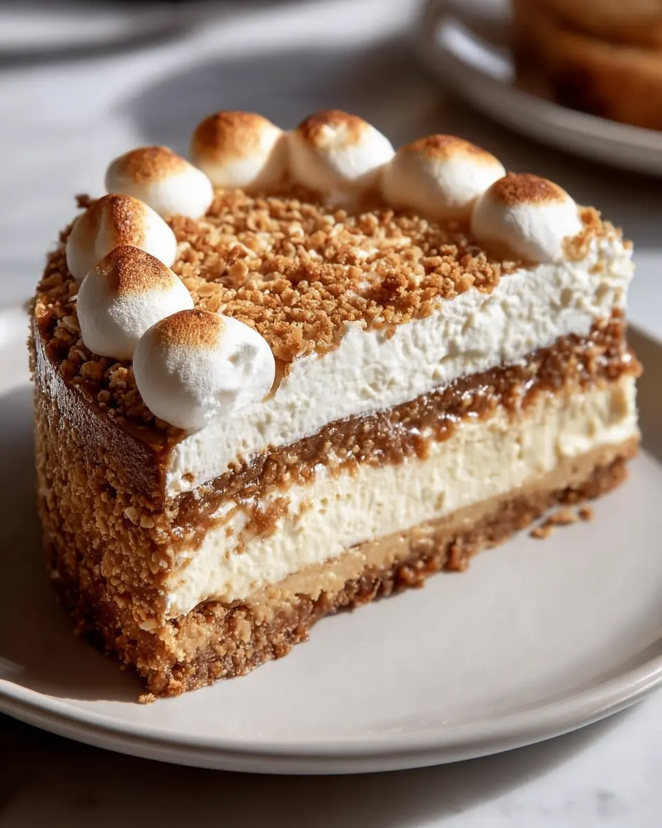 - Just before serving, top the cheesecake with mini marshmallows and a dollop of whipped cream for a delightful finish.