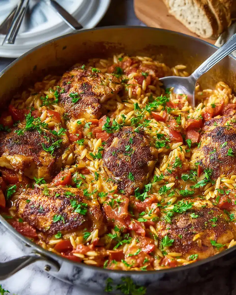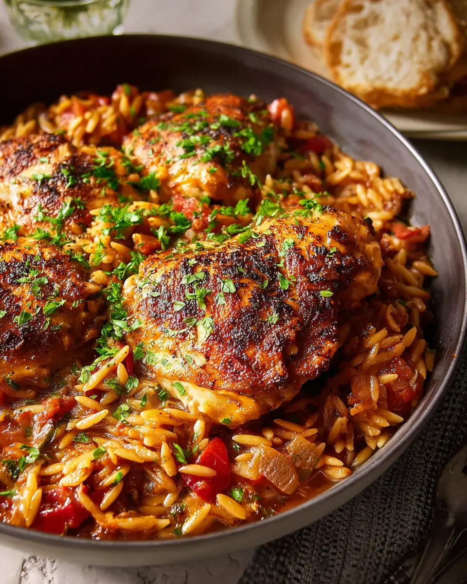 Life gets busy, and prepping ahead can make your week much smoother. You can chop your vegetables and season the chicken the night before, storing them in the fridge for easy access. If you have leftovers, this meal reheats beautifully. Just save some of the chicken stock so the orzo doesn’t absorb all the moisture when you warm it up. Perfect for a quick lunch or dinner!