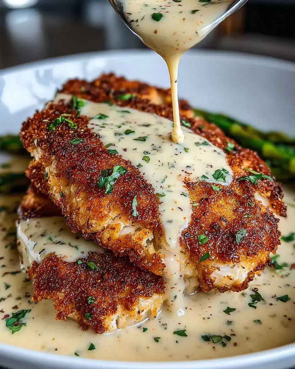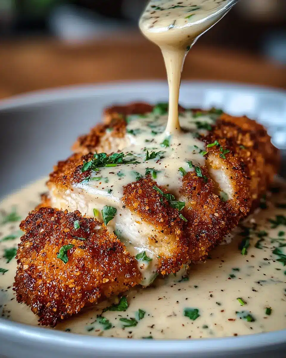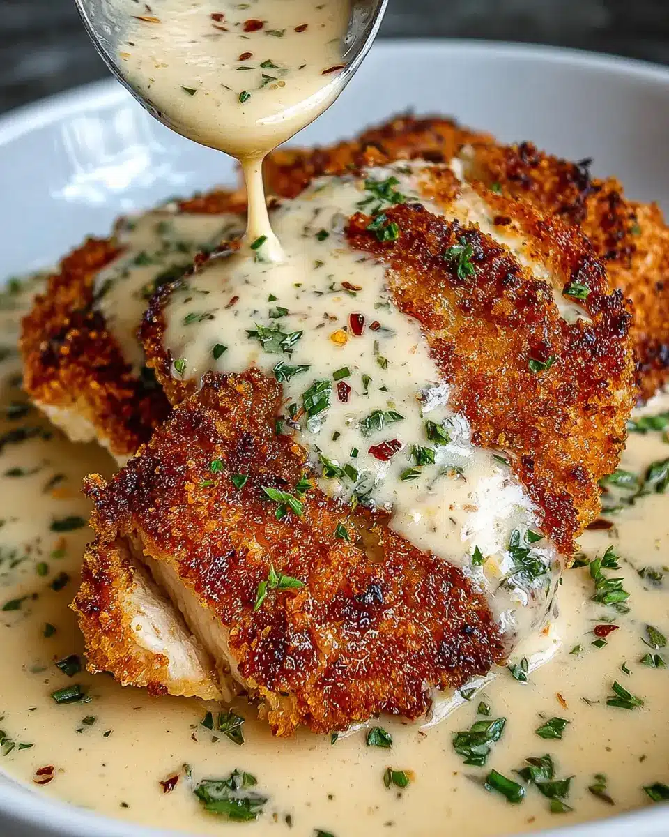 Parmesan Crusted Chicken with Creamy Garlic Sauce