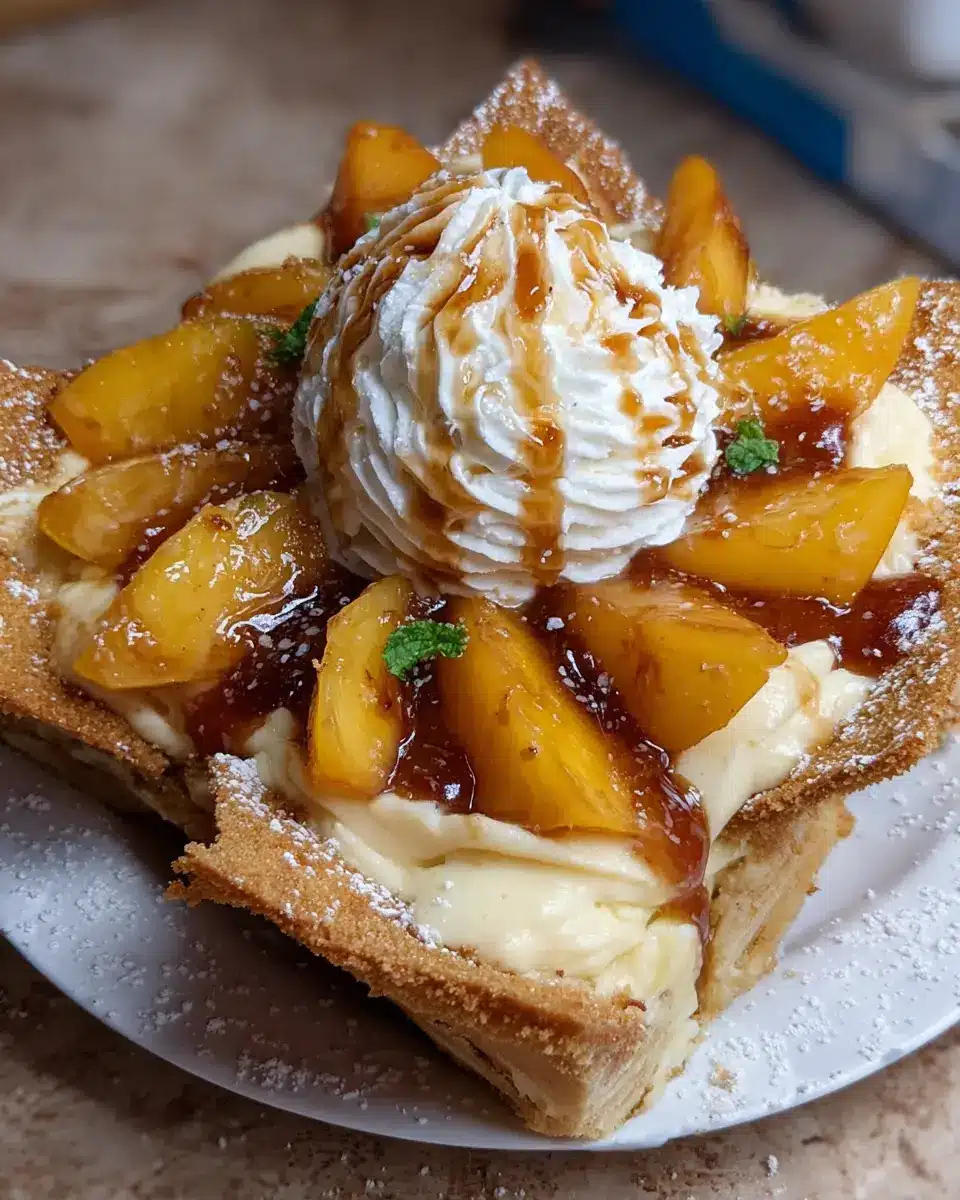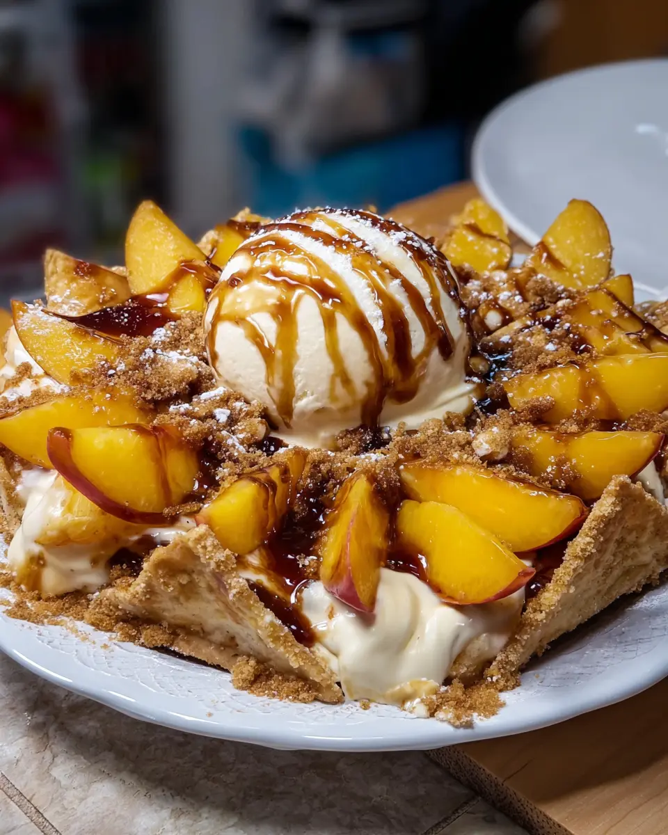 When making the vanilla glaze, aim for a consistency that drizzles smoothly — it should coat the back of a spoon without running off too quickly. This makes your Peach Cobbler Cheesecake Nachos visually stunning! If you want a bit more body, incorporate a touch of softened cream cheese into the glaze for an extra creamy richness. Serve immediately to preserve the contrasting textures of warm peaches and cold ice cream.