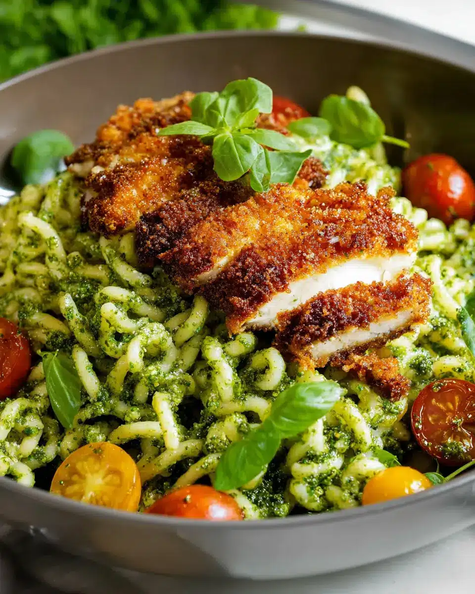 Indulging in Pesto Pasta with Crispy Parmesan Chicken is a delightful way to elevate your weeknight dinner. The creamy pesto paired with crunchy chicken creates a satisfying blend of textures and flavors that is hard to resist. This dish is sure to impress family and friends alike—enjoy!