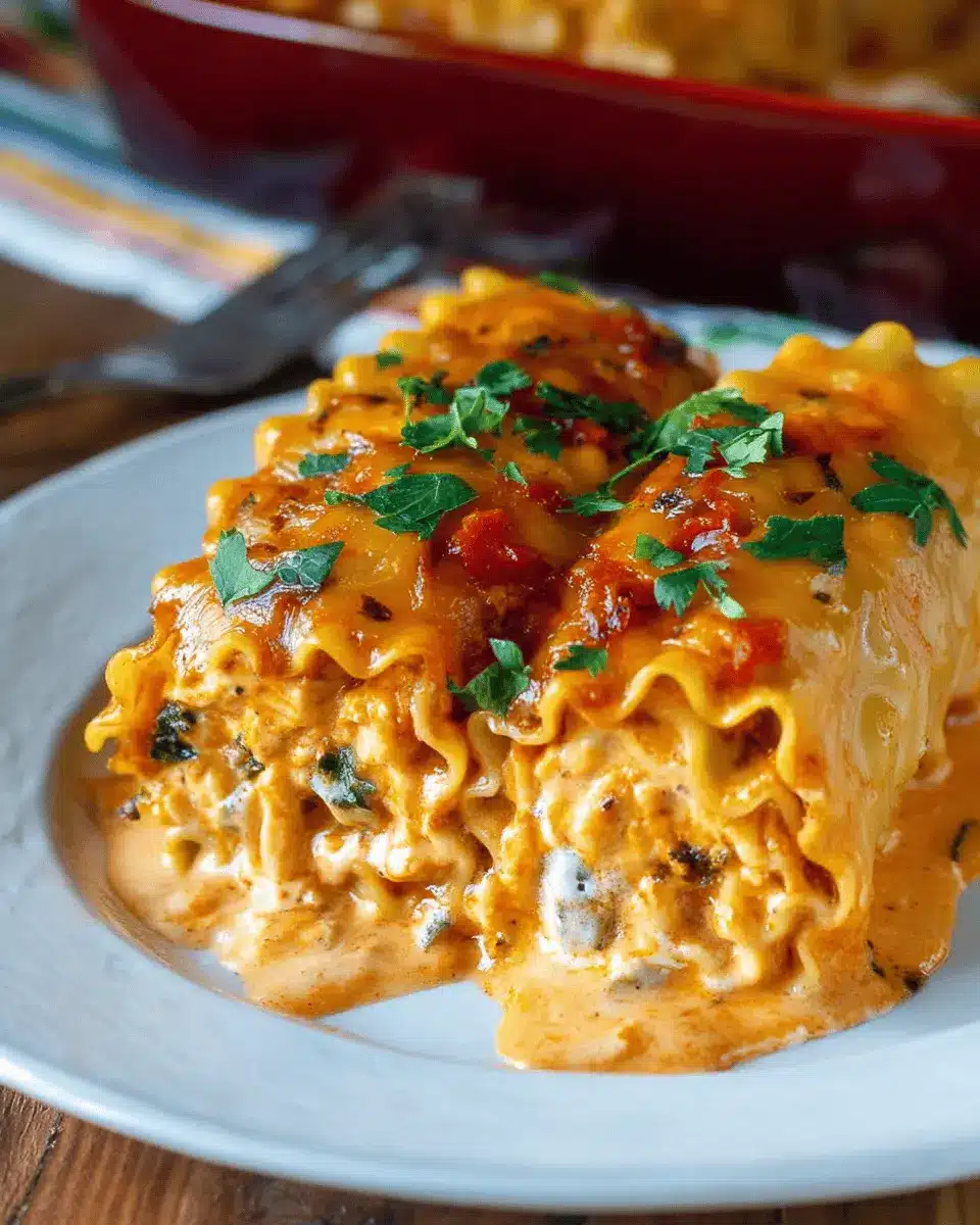 If you’re craving a kick, elevate your southwest chicken lasagna roll ups with spicy ingredients! Consider adding jalapeños or green chilies into your filling and toss in some cayenne pepper to the cheese sauce. For an extra fiery twist, try using spicy taco seasoning while mixing your filling. This version is perfect for heat lovers and pairs perfectly with a cooling side of guacamole or sour cream!