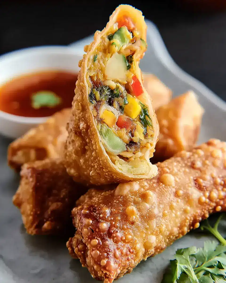 Here’s a secret for achieving that golden crunch: freeze the wrapped egg rolls for at least 4 hours. This will help them hold their shape while frying and results in a wonderfully crispy exterior when cooked.