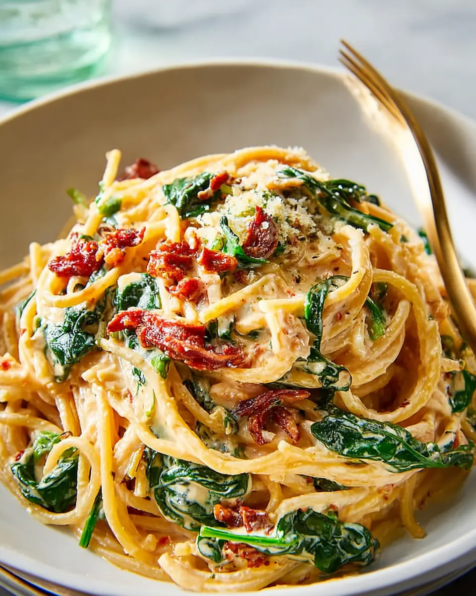 And there you go—a simple yet stunning dish that’s sure to impress. This spaghetti spinach sun-dried tomato cream sauce is the kind of recipe that keeps giving; consider pairing it with a fresh salad or a side of grilled chicken for a complete meal. Enjoy your cooking adventure!