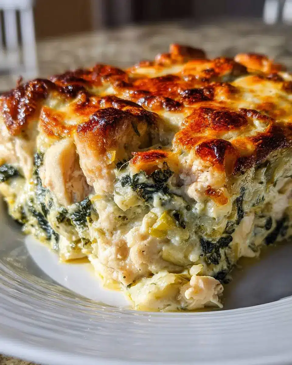 In summary, the Spinach Artichoke Chicken Casserole is a delightful one-dish meal that combines creamy textures with savory flavors. Perfect for weeknight dinners or gatherings, it’s easy to prepare and sure to satisfy. Enjoy this comforting dish with family and friends for lasting memories. Happy cooking!