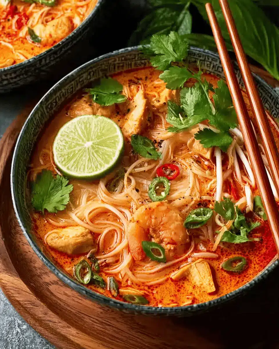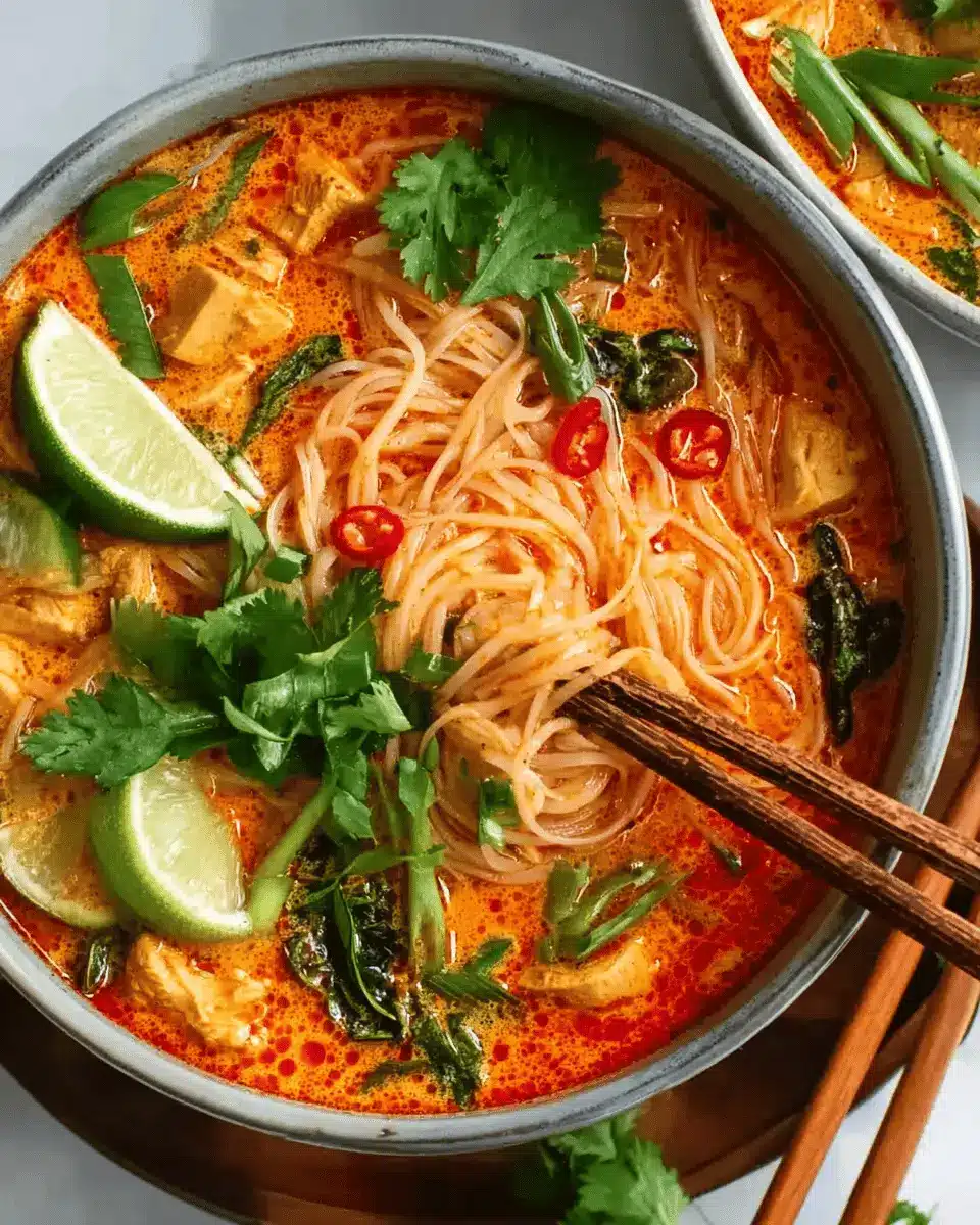 Garnishing: Don’t skip the fresh herbs and lime juice at the end; they add a refreshing brightness that balances the rich coconut milk beautifully.