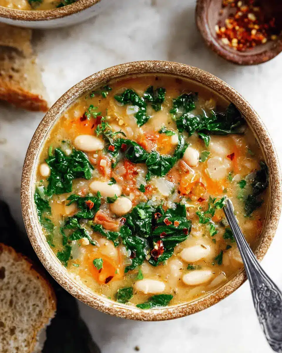 To store your Tuscan White Bean Soup, place it in a sealed container in the fridge, and it should stay fresh for up to a week. For longer storage, you can freeze it in portions for up to three months. When ready to reheat, simply thaw your soup if frozen, then heat gently on the stovetop, adding a splash of broth if it’s too thick.