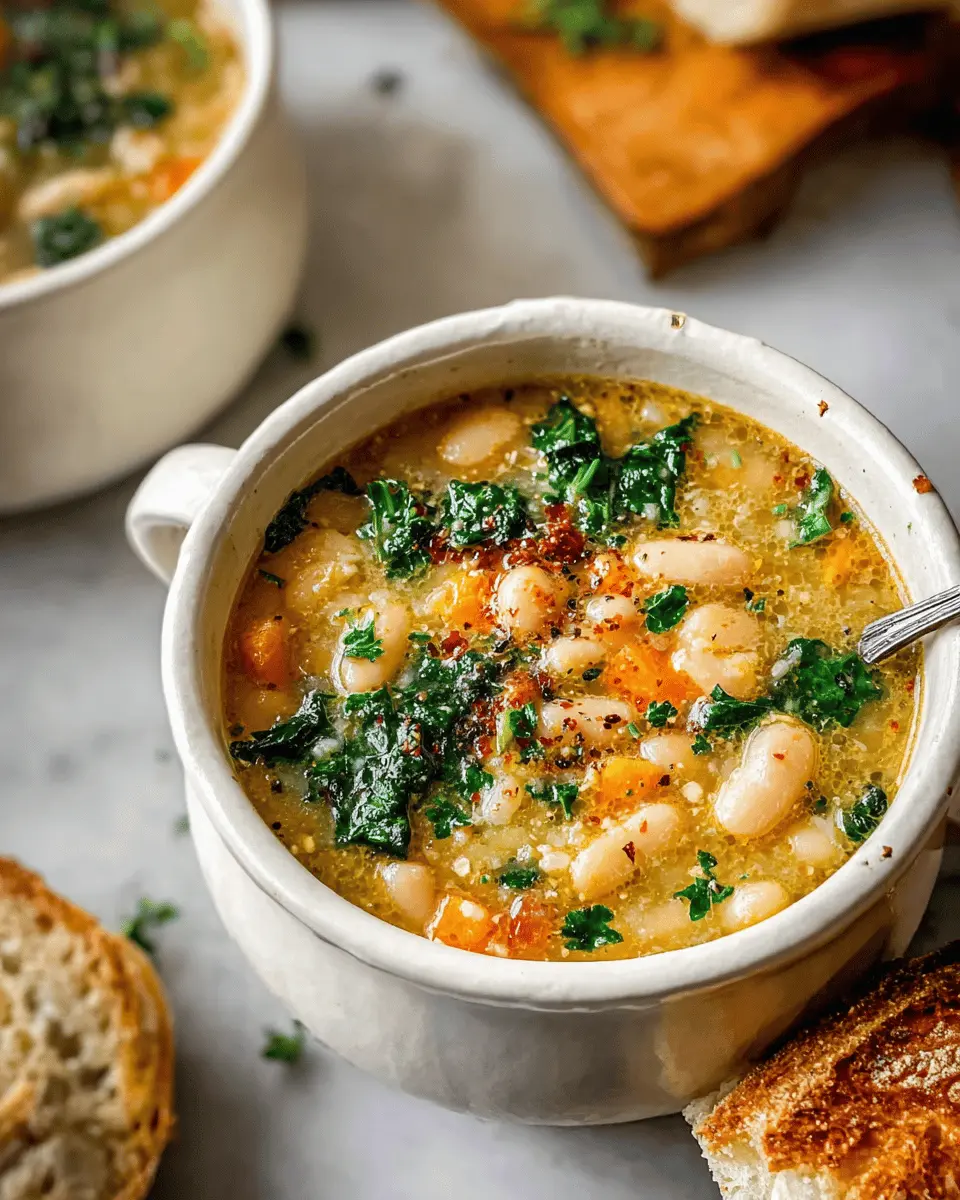 In just a few steps, you've created a comforting bowl of Tuscan White Bean Soup that’s perfect for any occasion. Enjoy!