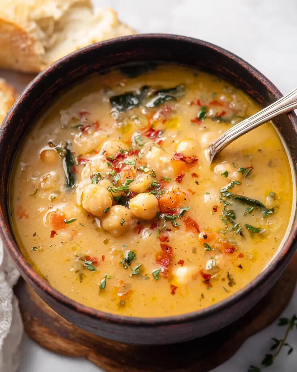 In just 30 minutes, you can enjoy a creamy and comforting Vegan Garlic Chickpea Soup that's not only delicious but also packed with nutrients. It's perfect for a quick weeknight meal or a cozy weekend treat. Dive into this wholesome recipe and experience the heartwarming flavors for yourself!